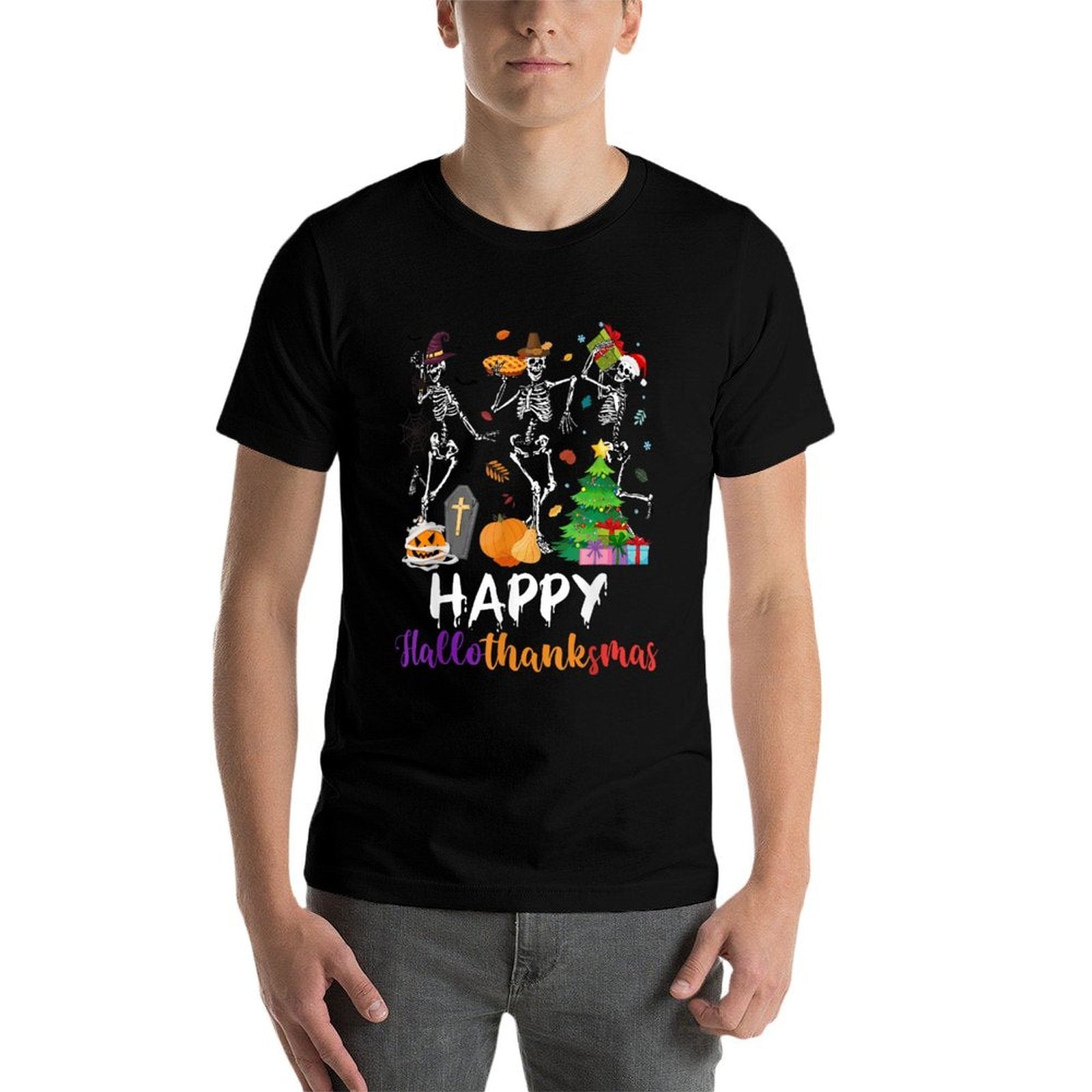 Happy Hallothanksmas Skeleton Pumpkin Turkey Santa Dancing Summer-ready Fabric T-Shirt