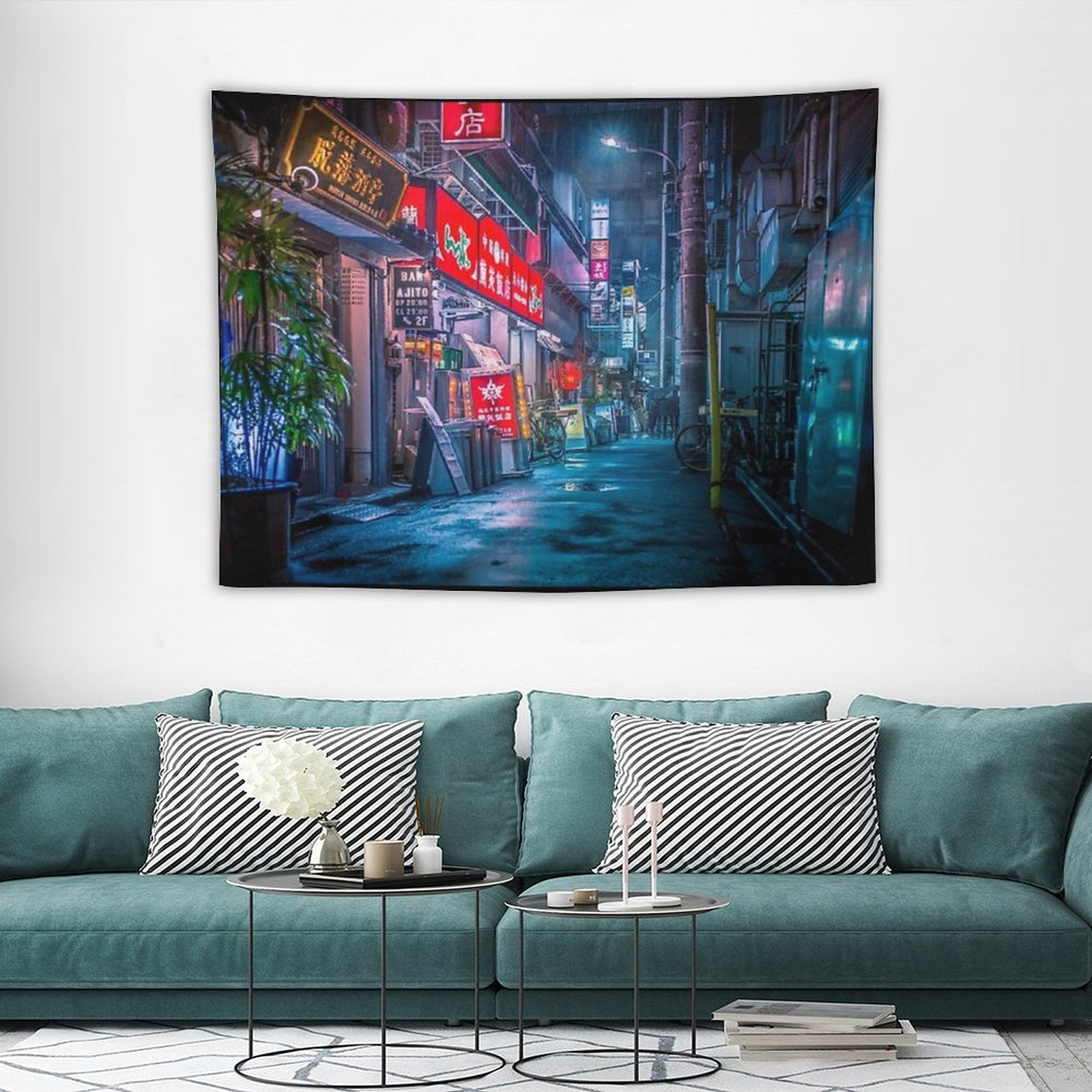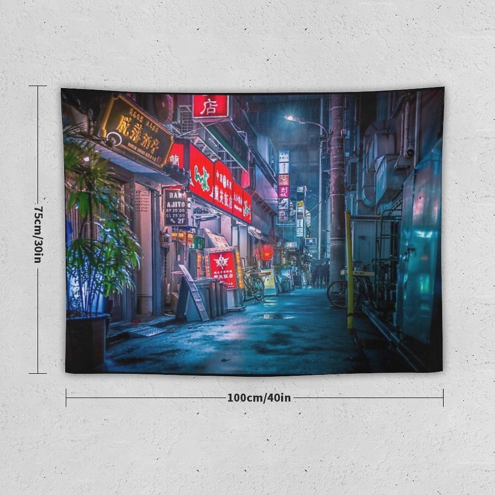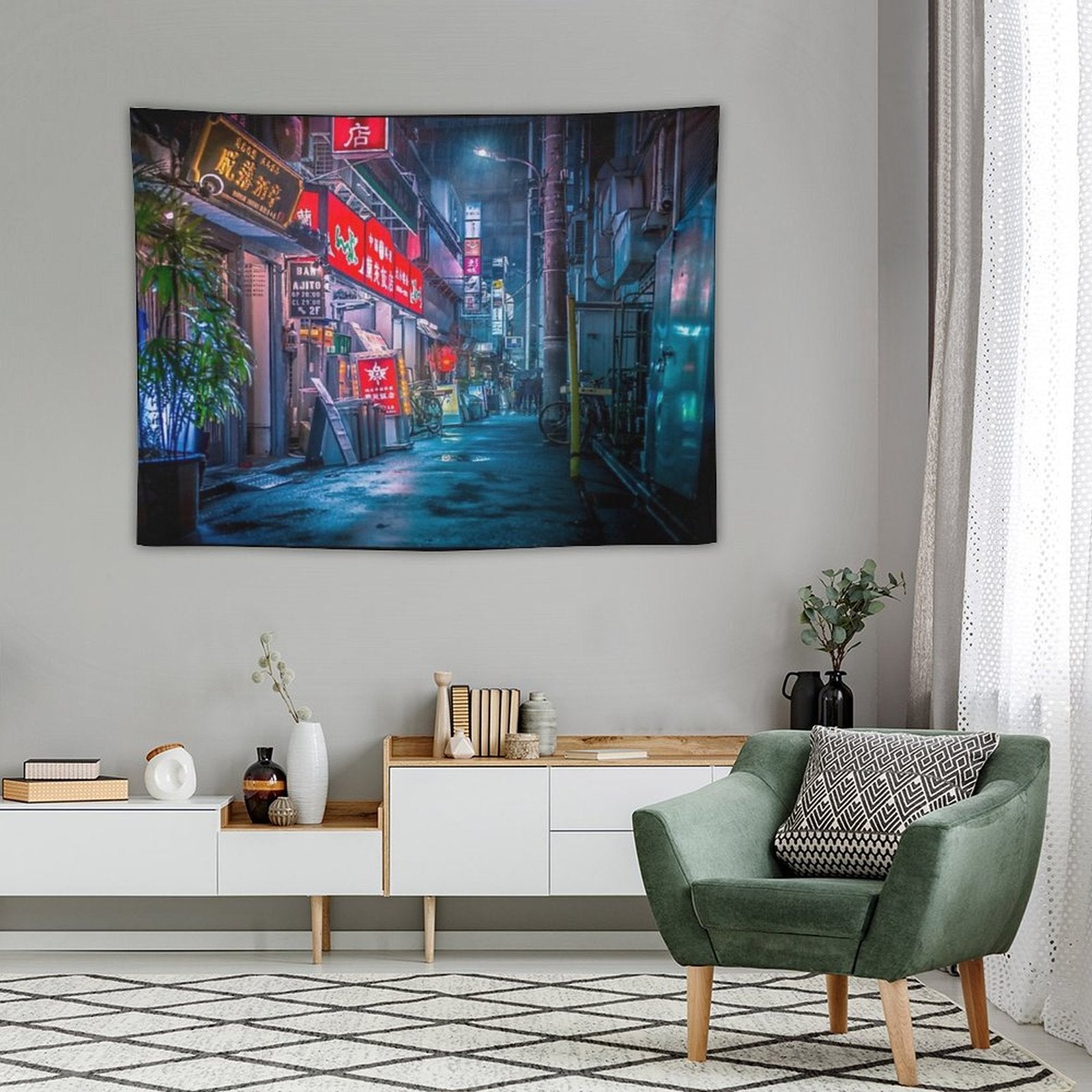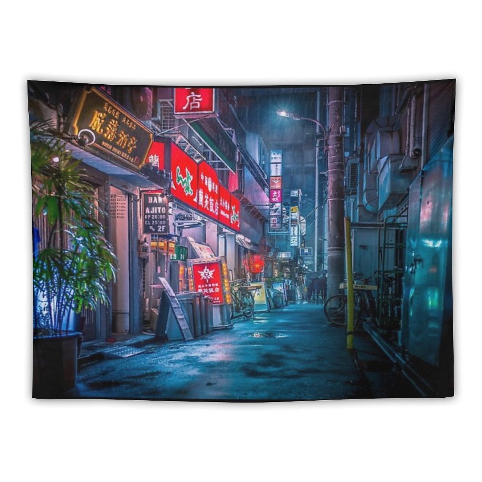 BionZax's Heavy Rain Over Neo Tokyo Tapestry for Bedroom, College Dorm. Heavy Rain Over Neo Tokyo Tapestry to decorate your bedroom, college dorm, living room, or kitchen wall, it is the best gift for funny, meme, aesthetic, trendy, simple, fashion, music, abstract, fantasy, modern tapestry for girls, men, boys, teen, women, kids.