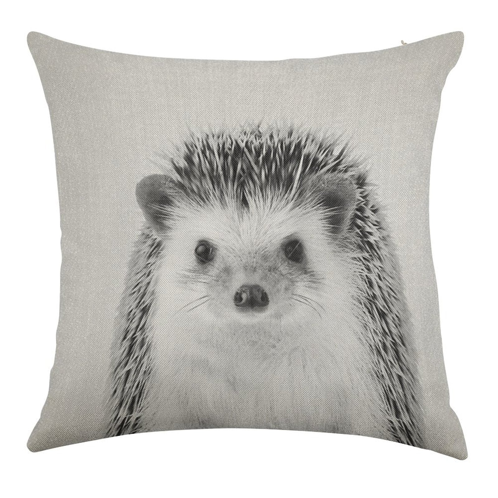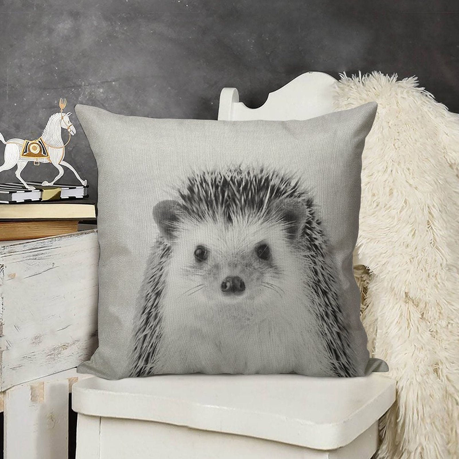 Hedgehog - Black & White Linen Throw Pillow Cover