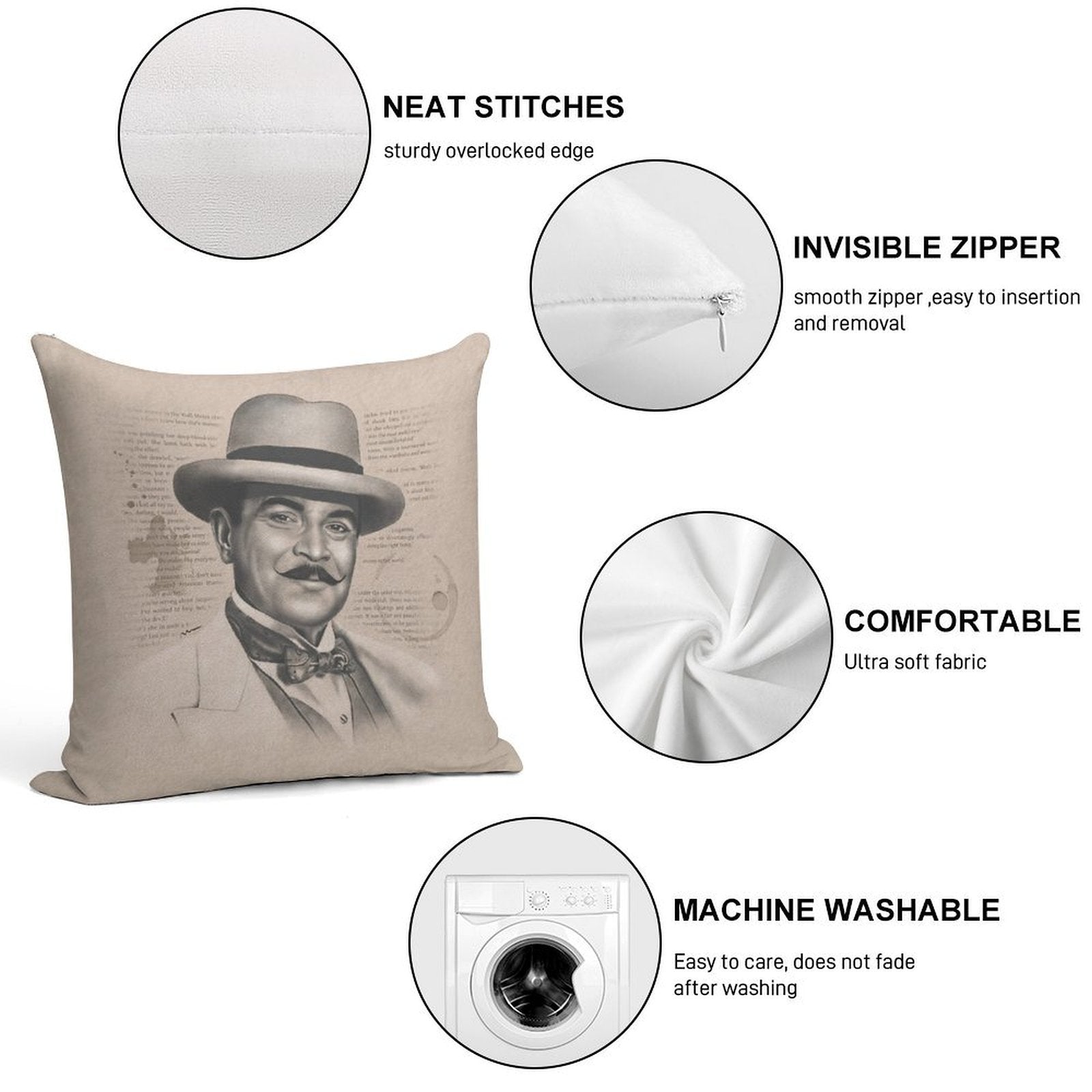 Hercule Poirot Soft Fade-Resistant Throw Pillow