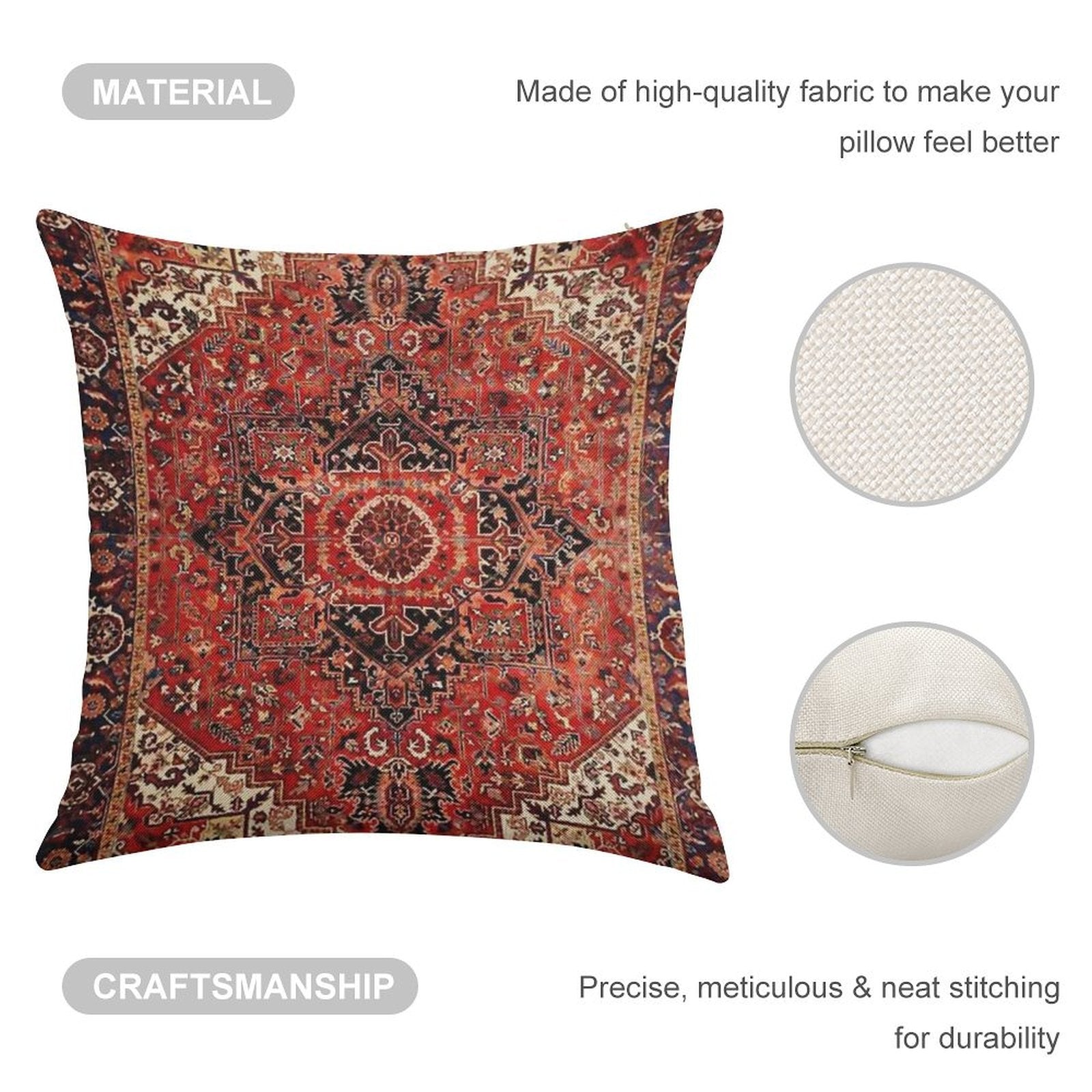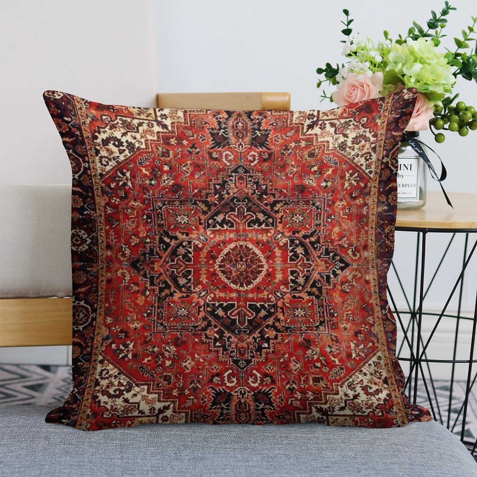 - Machine or hand washable (max 45°C). Avoid bleach and prolonged soaking to preserve the vibrant texture of your Heriz Antique Vintage Boho Persian Carpet Print Luxury Pillow Cover.