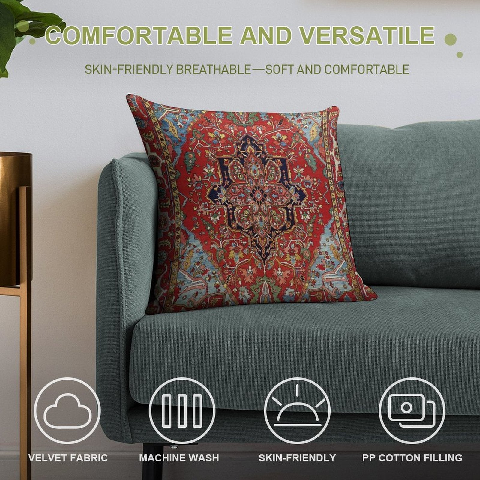 Heriz Persian Carpet Print Soft Luxury Feel Throw Pillow