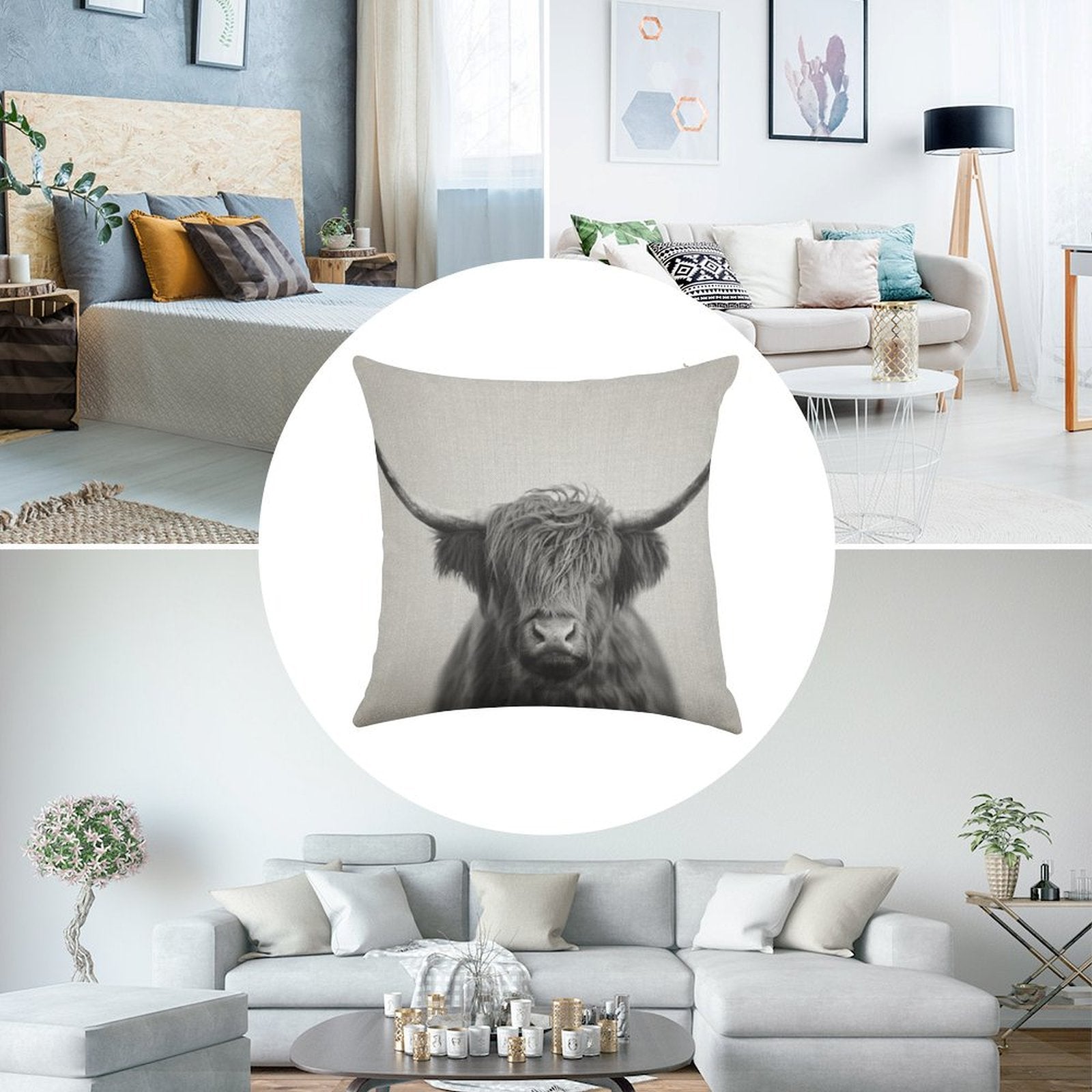 - Double-Stitched Edges: Precision stitching prevents fraying, stretching, and pilling, ensuring your Highland Cow - Black & White Linen Throw Pillow Cover stays pristine through countless uses.