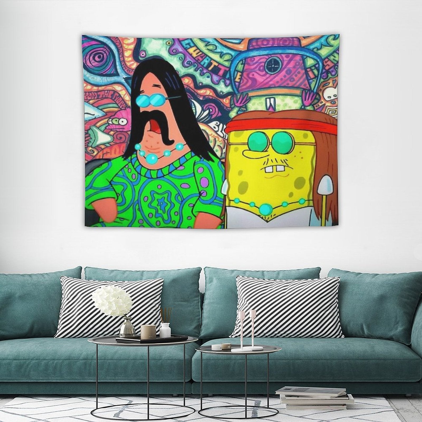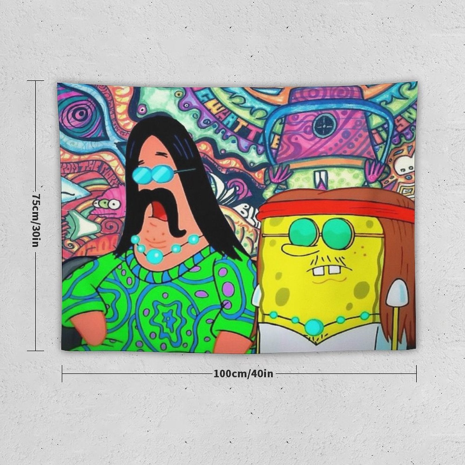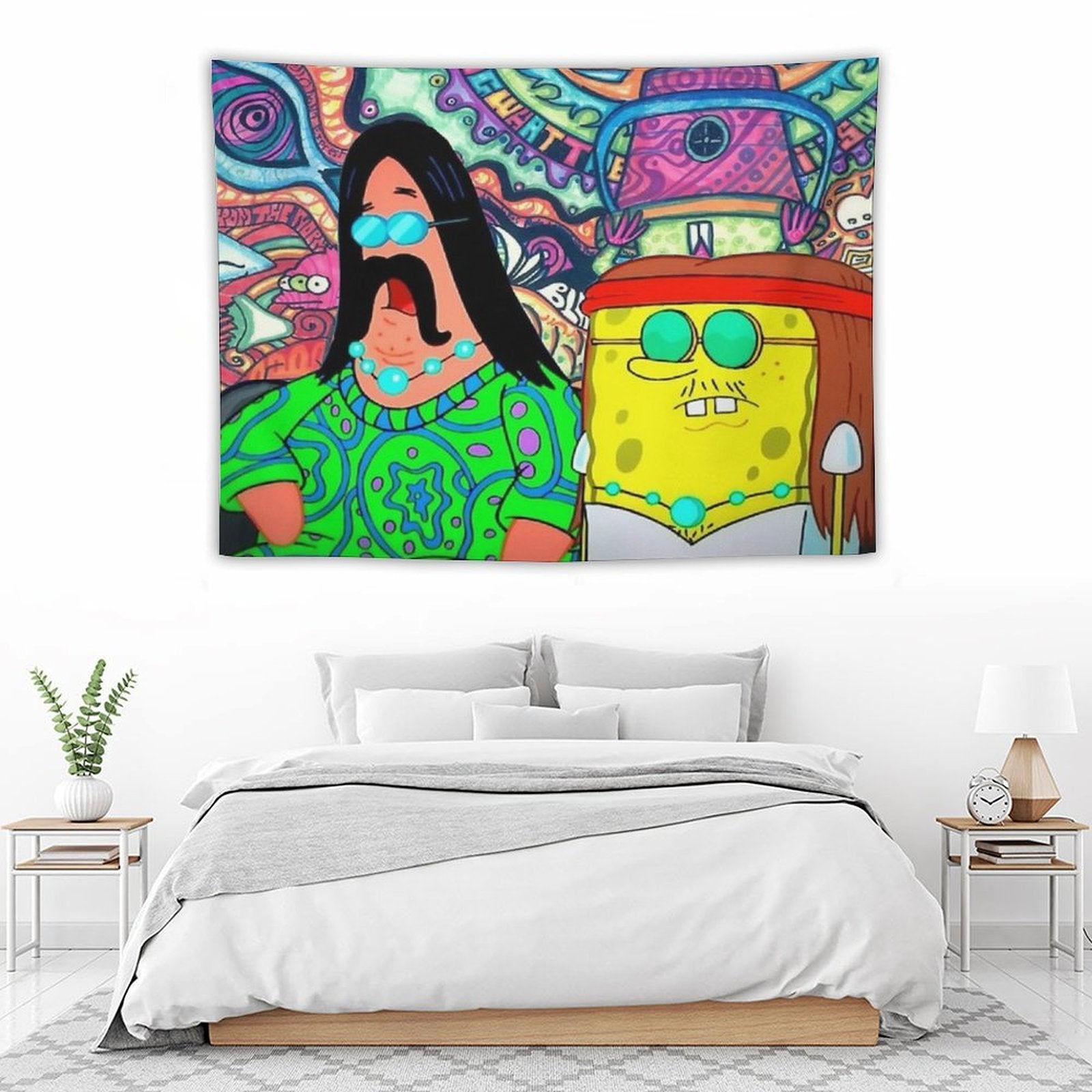 BionZax's Hippie Spongebob Tapestry for Bedroom, College Dorm. Hippie Spongebob Tapestry to decorate your bedroom, college dorm, living room, or kitchen wall, it is the best gift for funny, meme, aesthetic, trendy, simple, fashion, music, abstract, fantasy, modern tapestry for girls, men, boys, teen, women, kids.