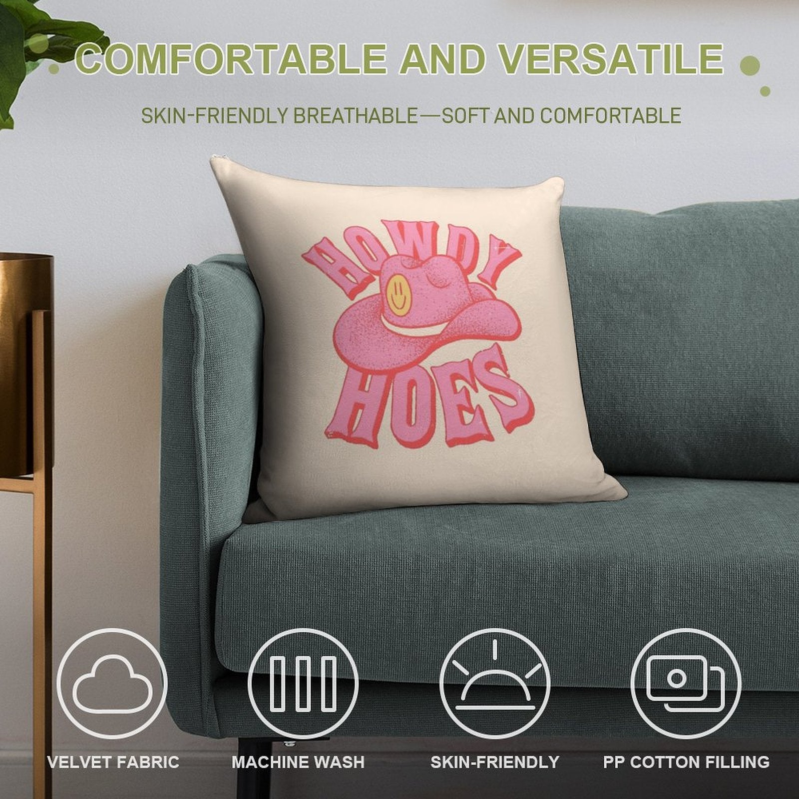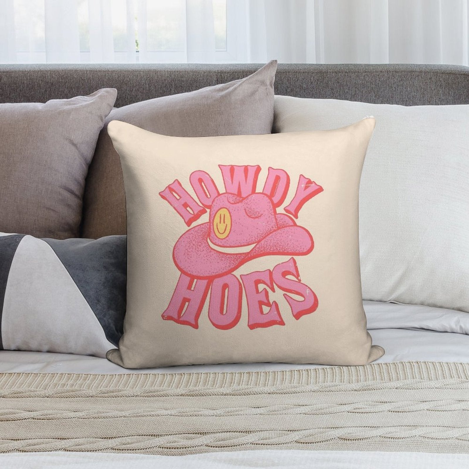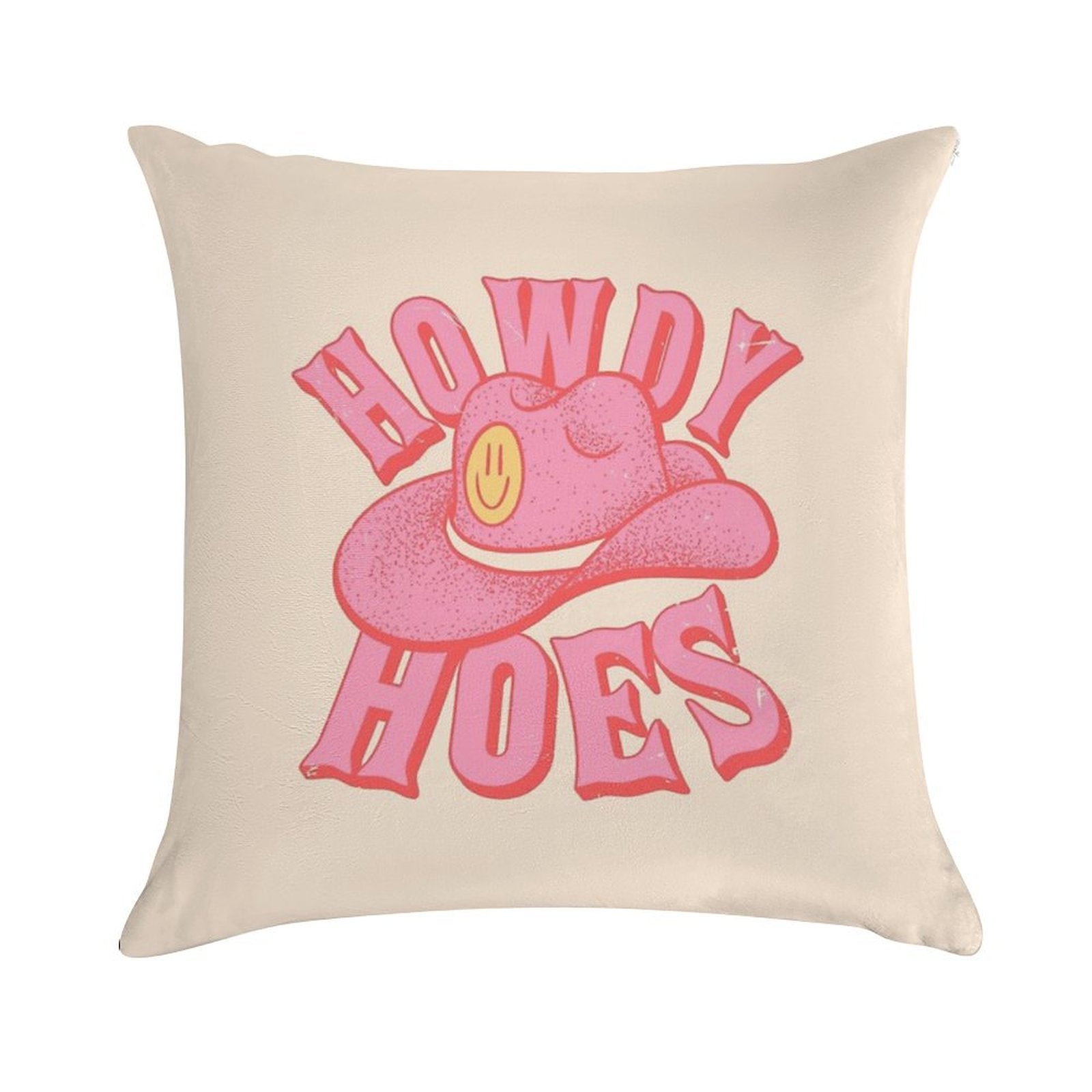 Howdy Hoes Pink Cowboy Cowgirl Rodeo Hat Preppy Aesthetic MEME HOWDY Y'ALL White Background Soft Decorative Cover Throw Pillow