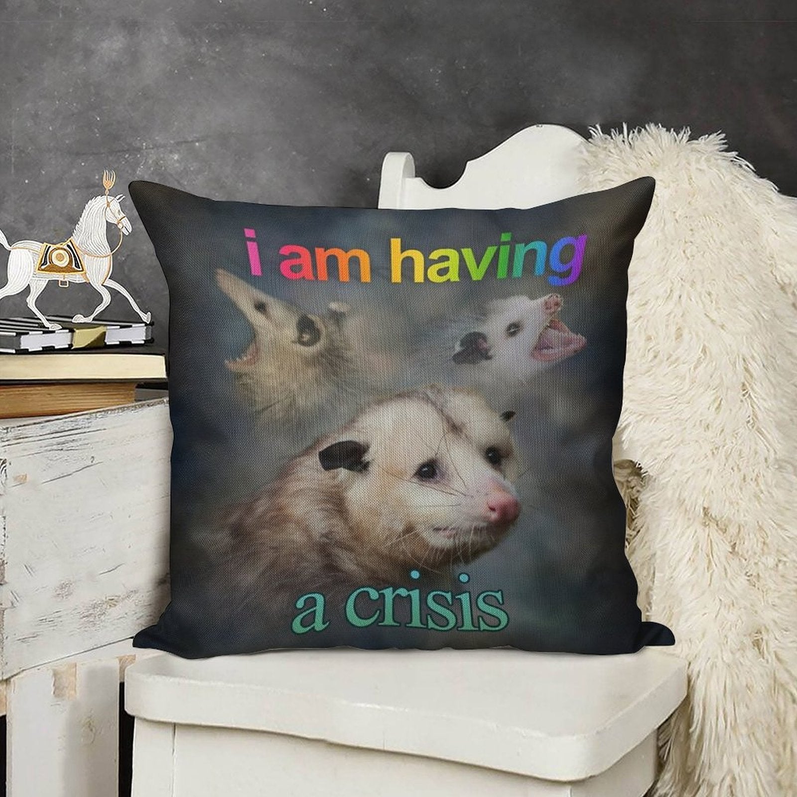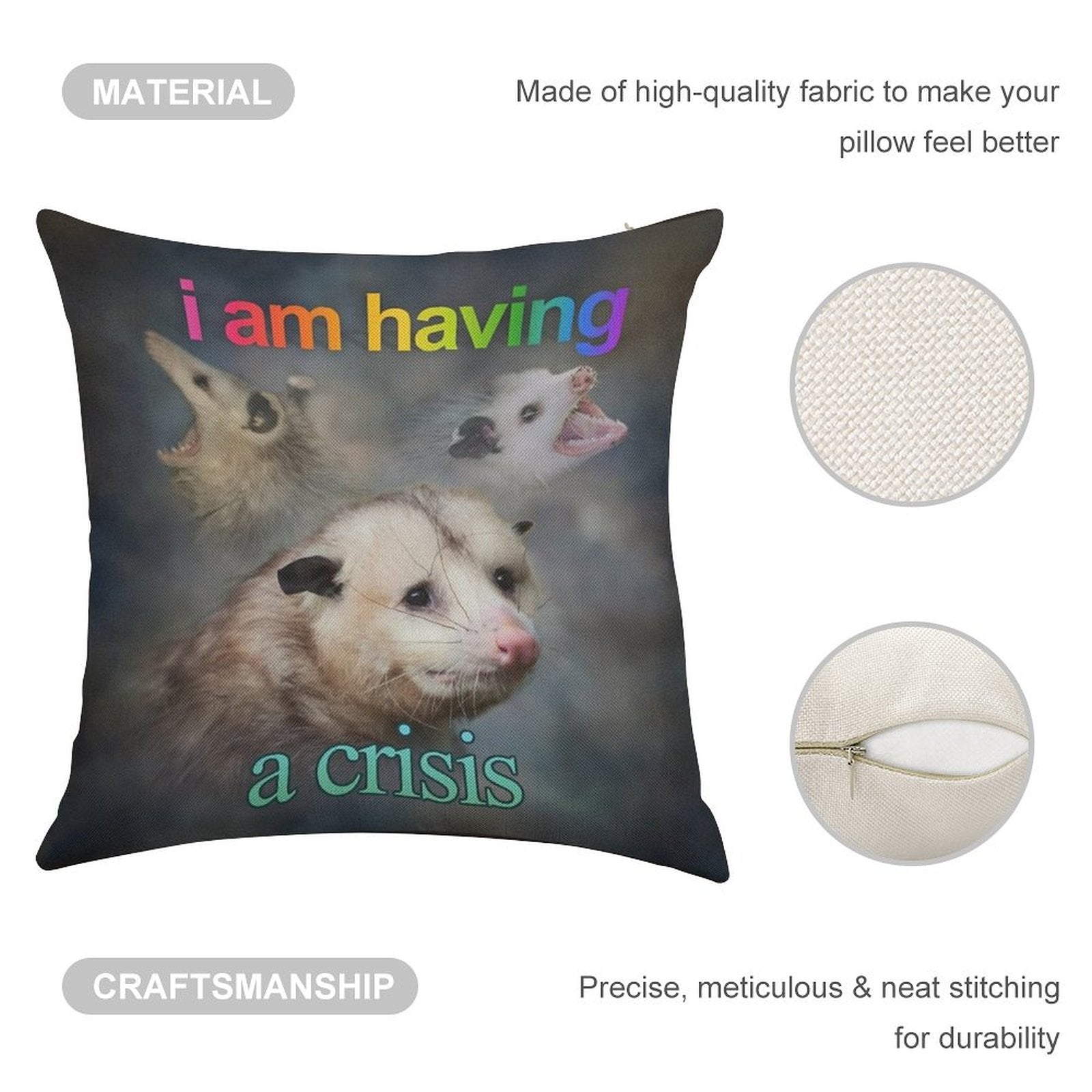 I Am Having A Crisis Possum Word Art Linen Throw Pillow Cover