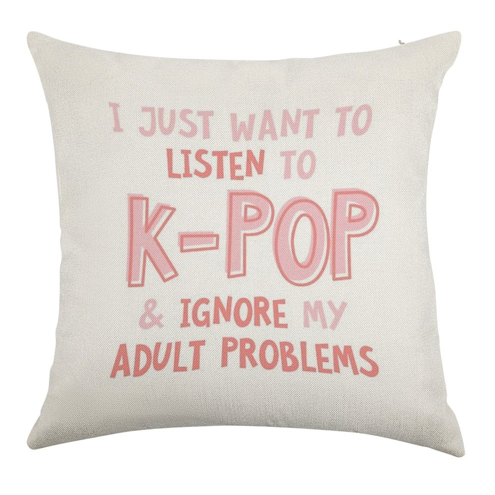 I Just Want to Listen to Kpop And Forget About My Adult Problems Linen Throw Pillow Cover
