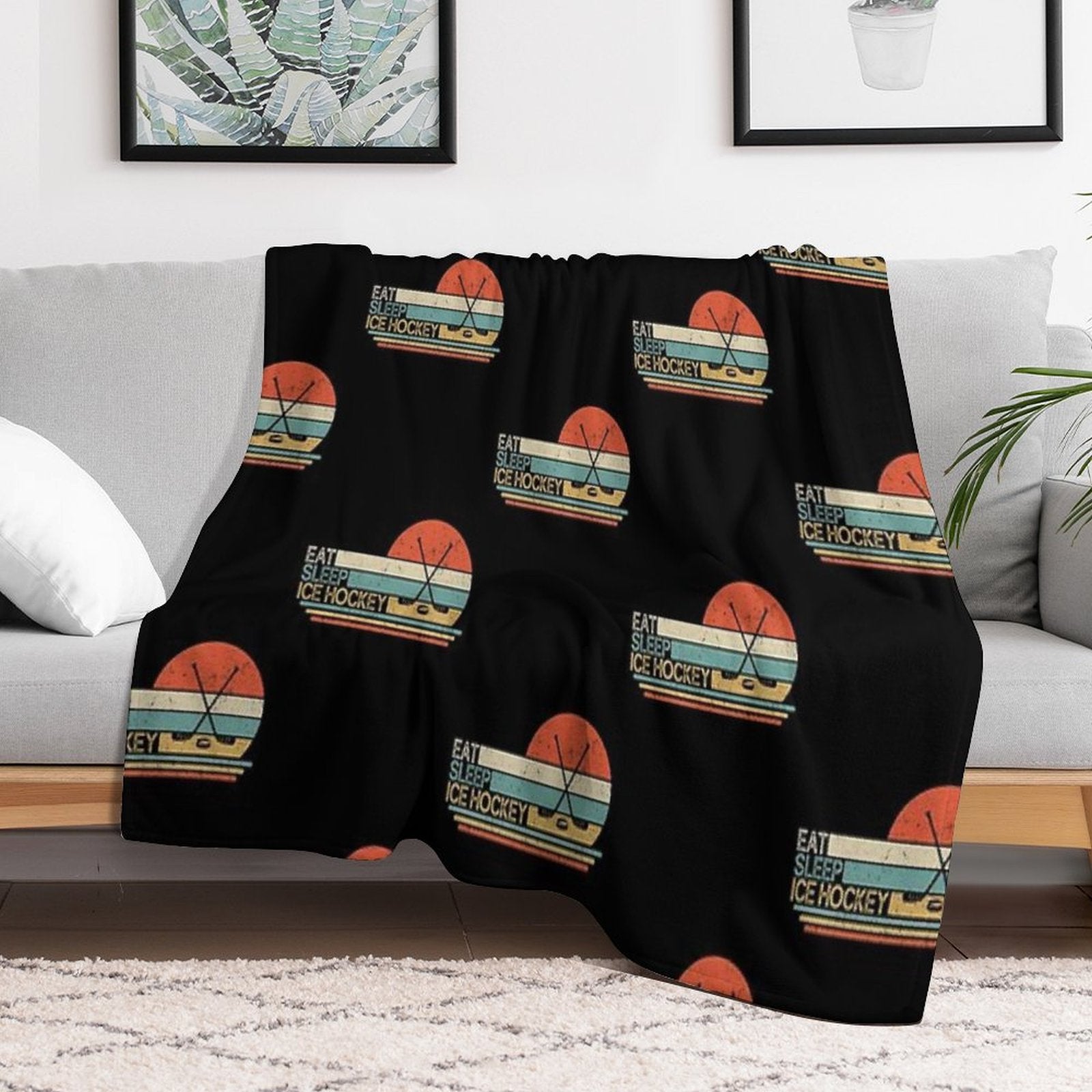 Ice Hockey Vintage Eat Sleep Throw Blanket