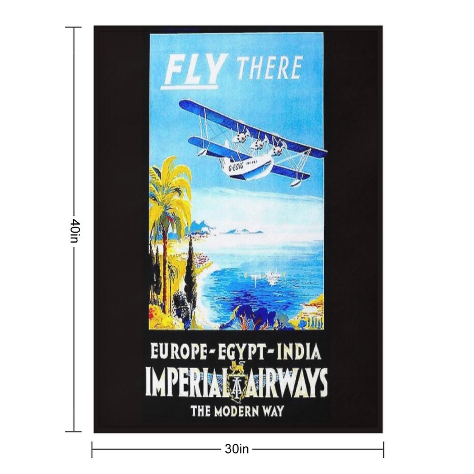 IMPERIAL AIRWAYS Vintage Fly to Europe Egypt And India Advertising Print Throw Blanket