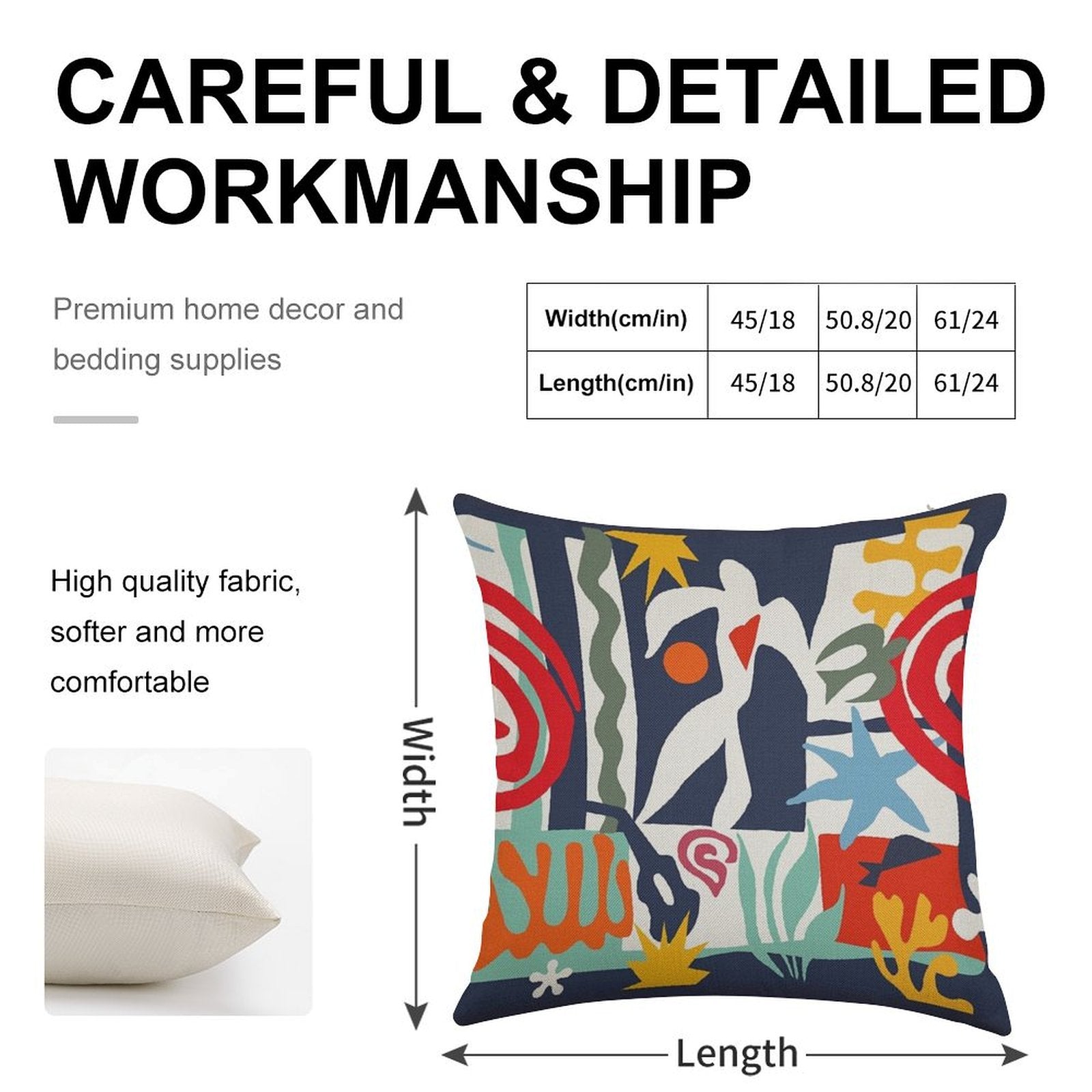 - Double-Stitched Edges: Precision stitching prevents fraying, stretching, and pilling, ensuring your Inspired by Matisse Linen Throw Pillow Cover stays pristine through countless uses.