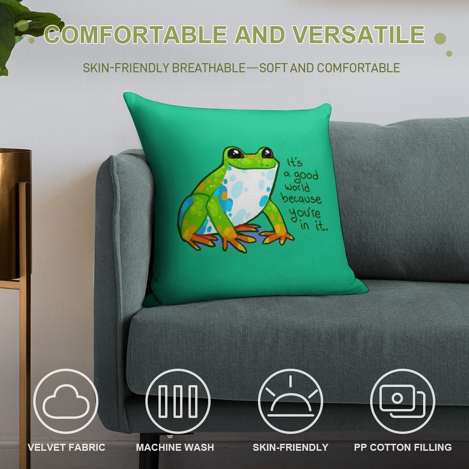 It's A Good World Because You're in It Frog Soft Fade-Resistant Throw Pillow