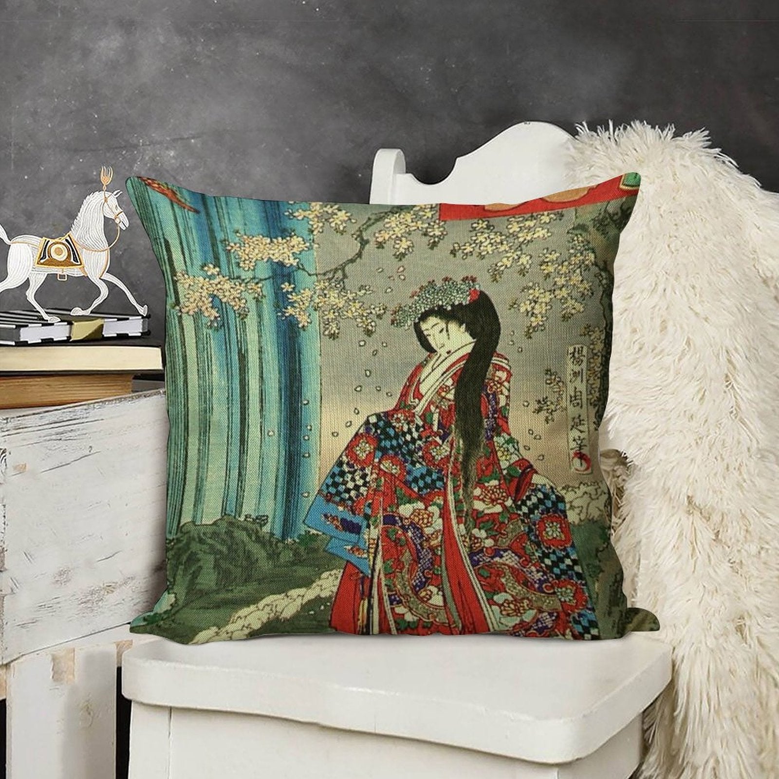 Japanese Classic Geisha Lady - Japan Art Linen Throw Pillow Cover