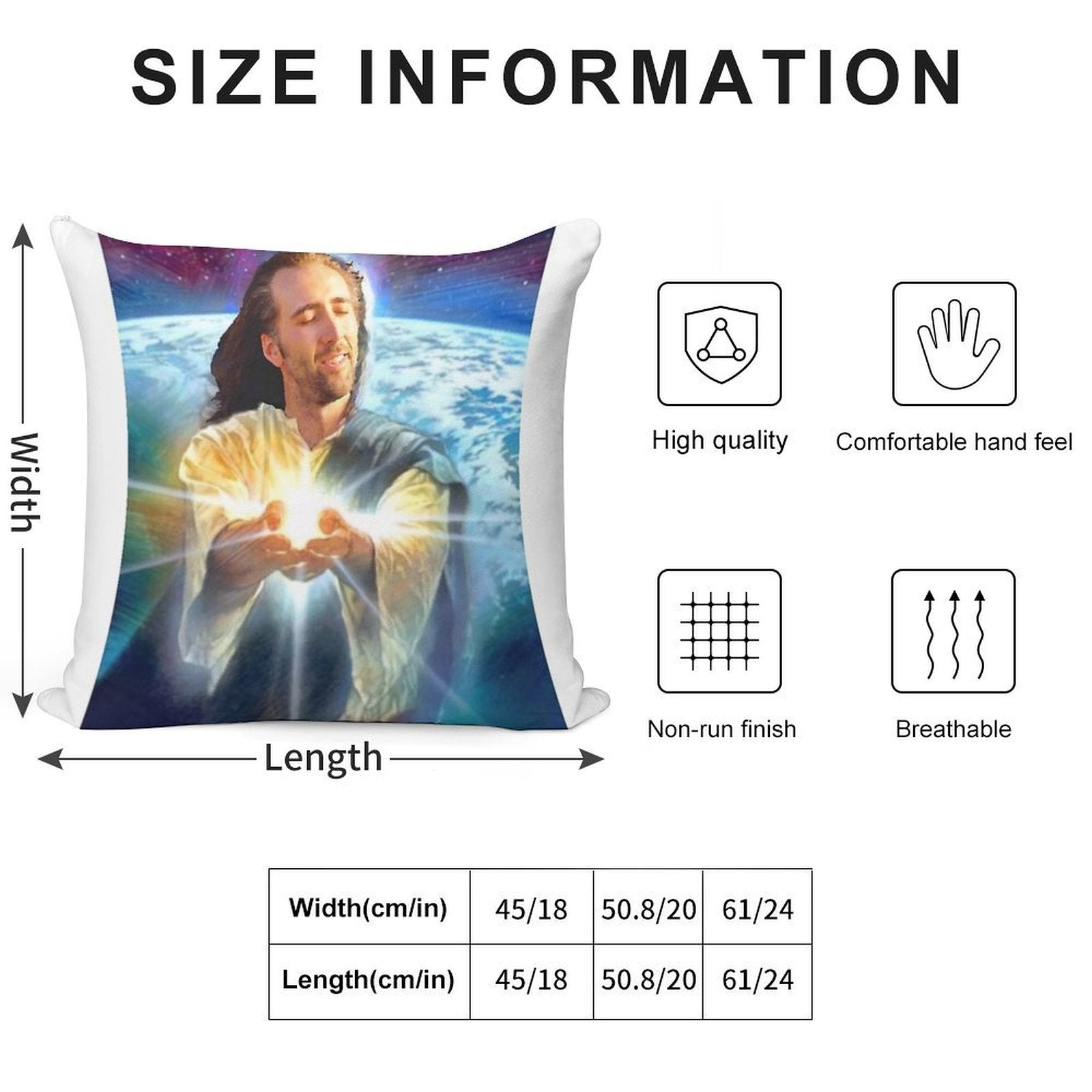 - Reinforced stitching along the edges prevents fraying and extends the life of your Jesus Cage Pillowcase.