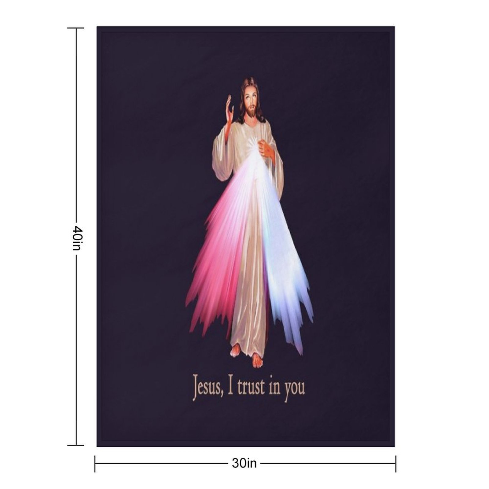 Jesus I Trust You Divine Mercy Image (transparent Background Design) Blanket Size Chart: