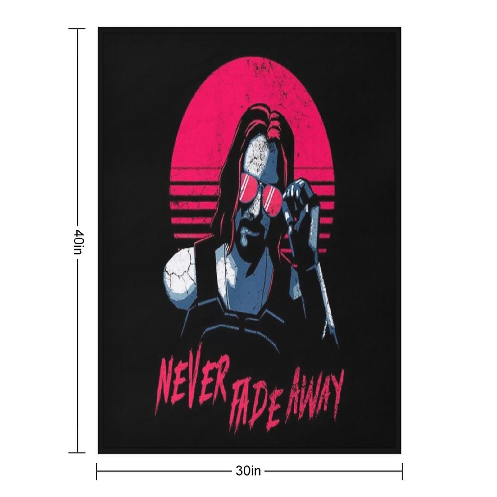 Johnny Silverhand Cyberpunk - Never Fade Away Classic Blanket Size Chart: