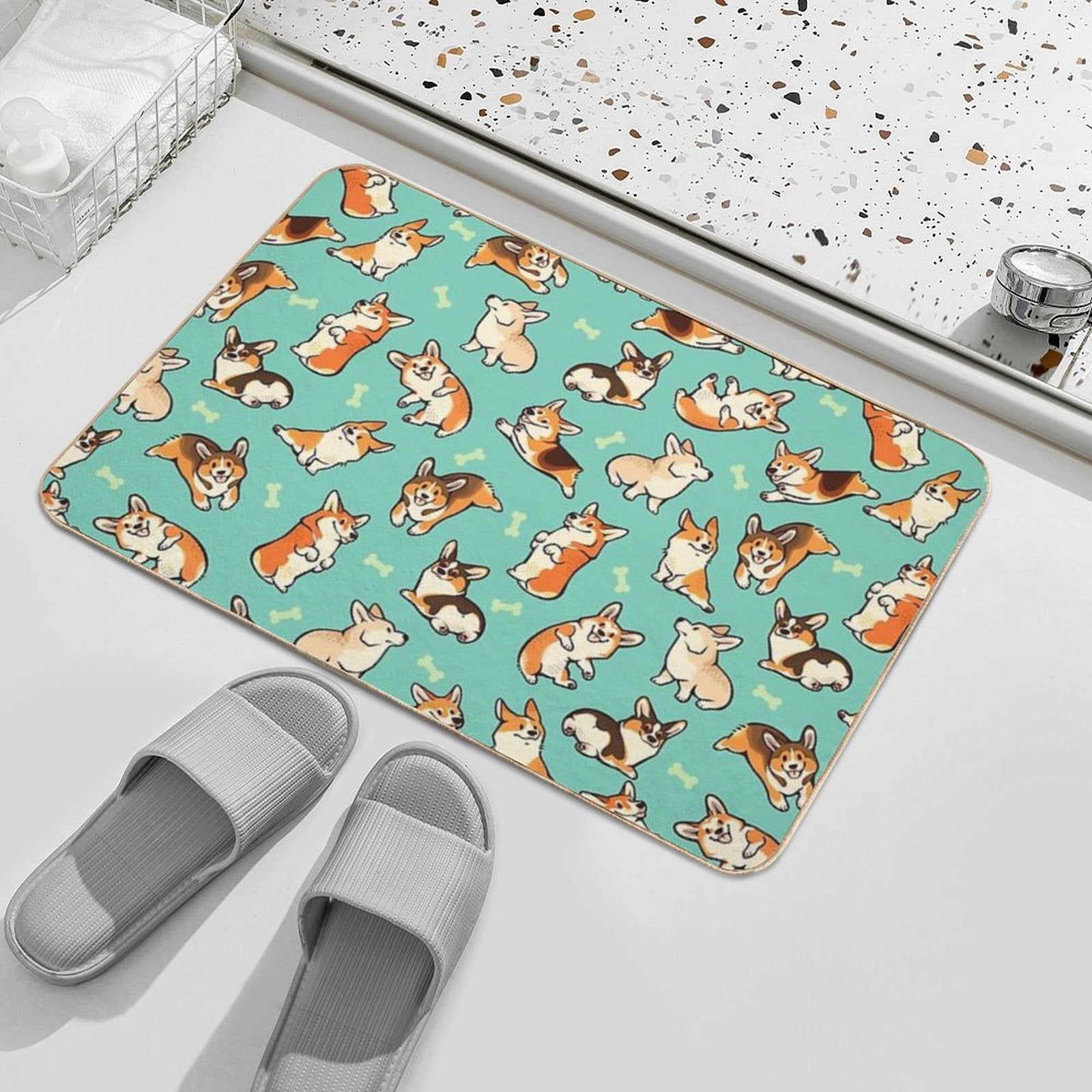 - Use as a vanity rug, guest suite accent, or mudroom defender – the Jolly Corgis in Green Mat adapts to any space.