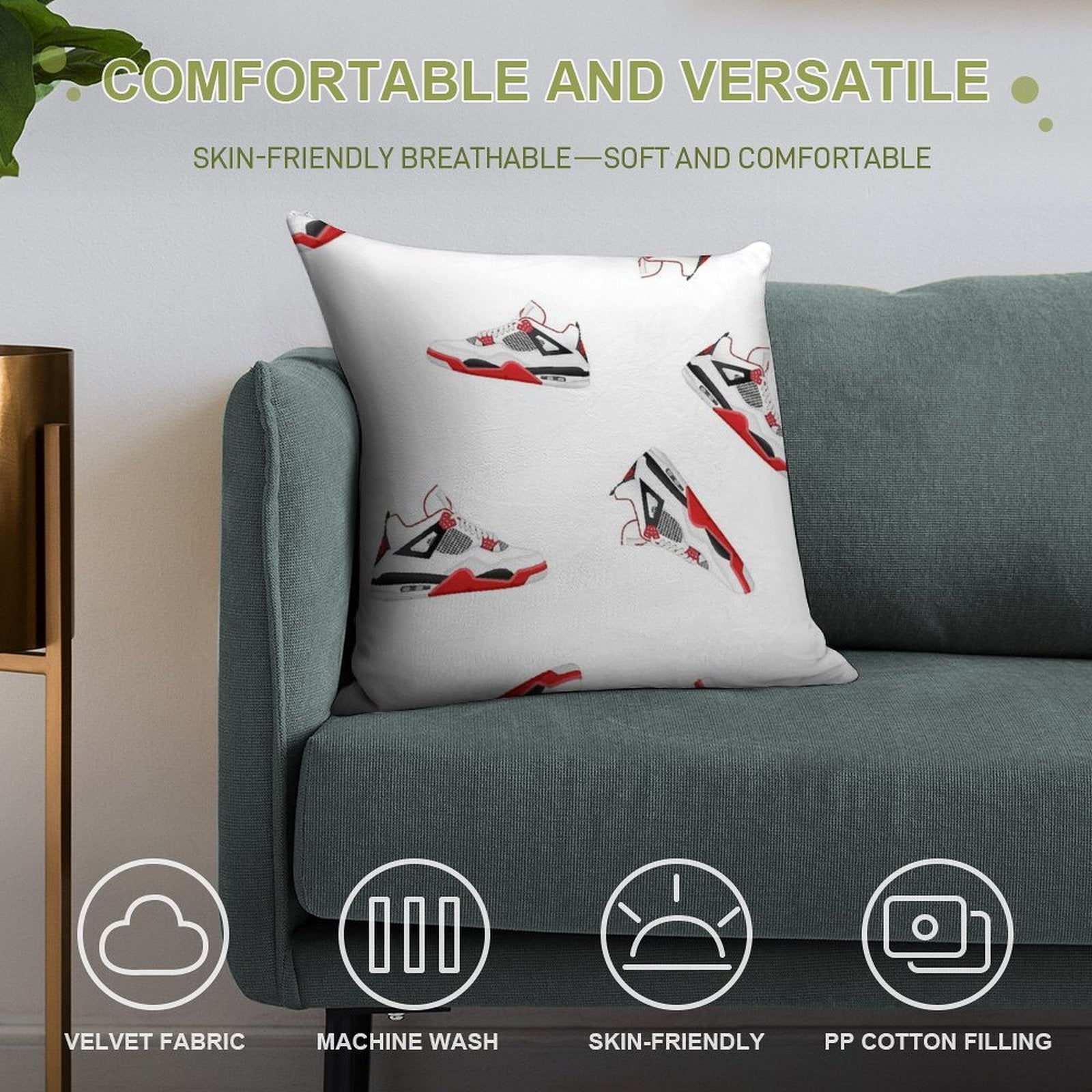 ✔️ Fits Any Style – Neutral tones and plush texture suit all Jordan 4 X Fire Red Shoe Design decors.