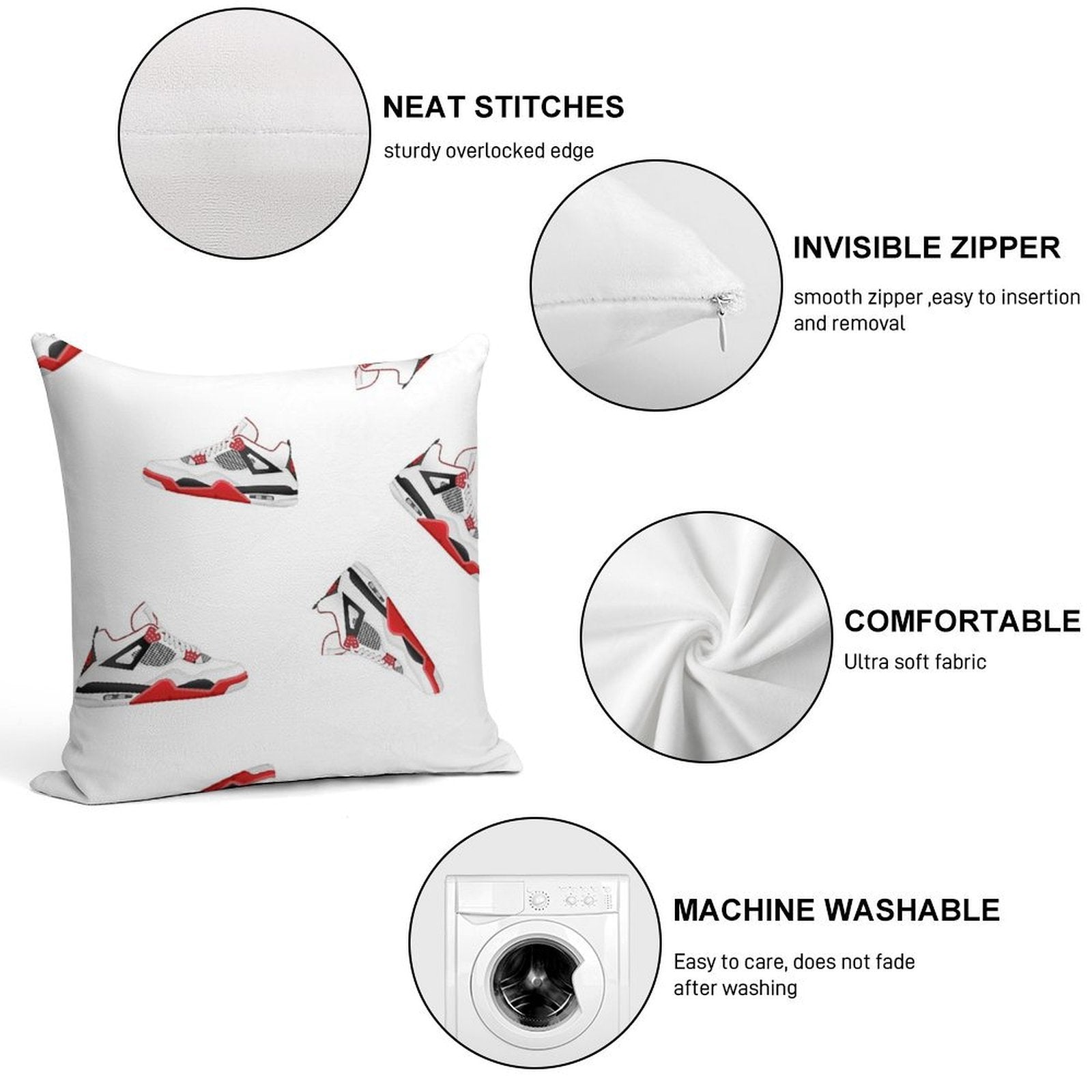 - Reinforced stitching along the edges prevents fraying and extends the life of your Jordan 4 X Fire Red Shoe Design Pillowcase.