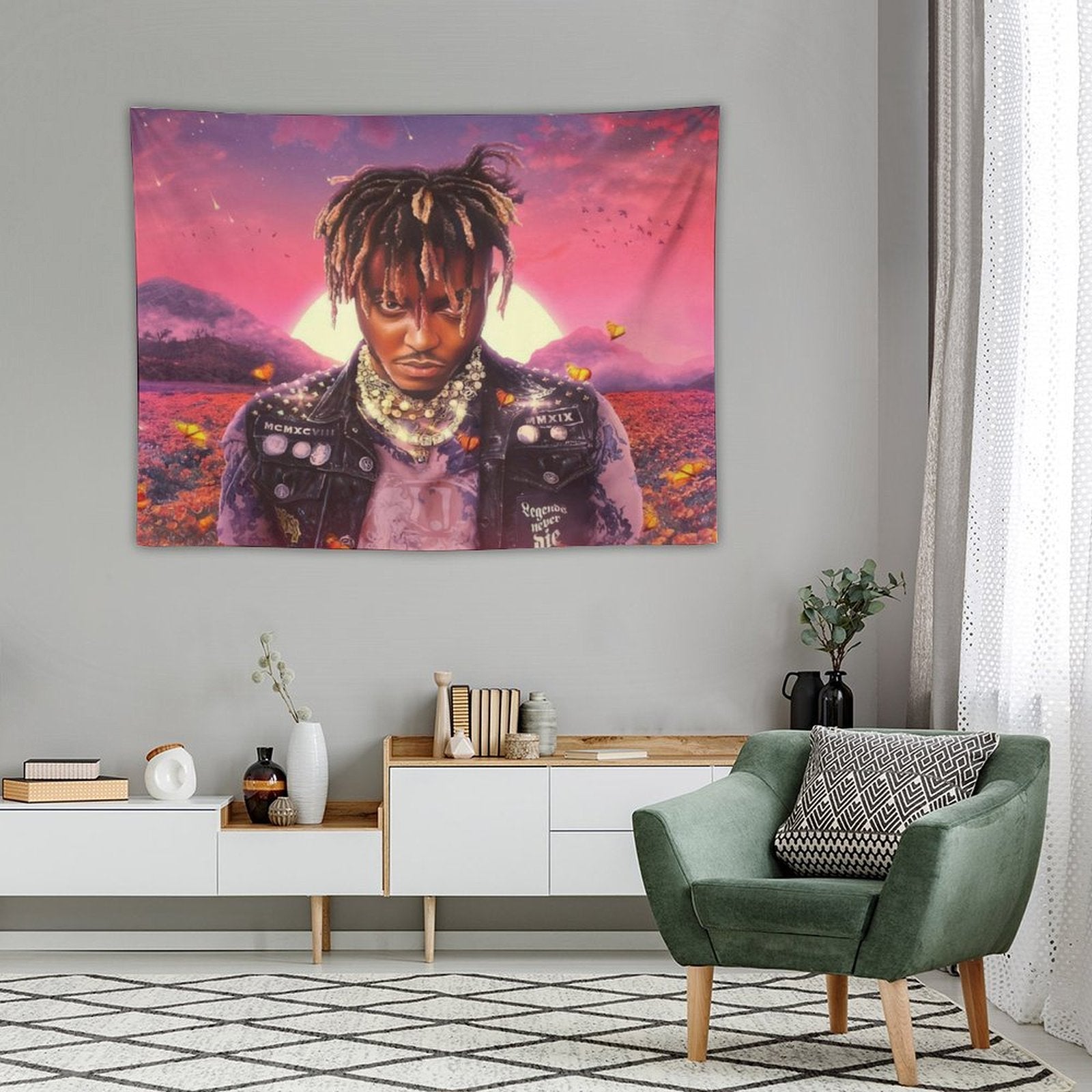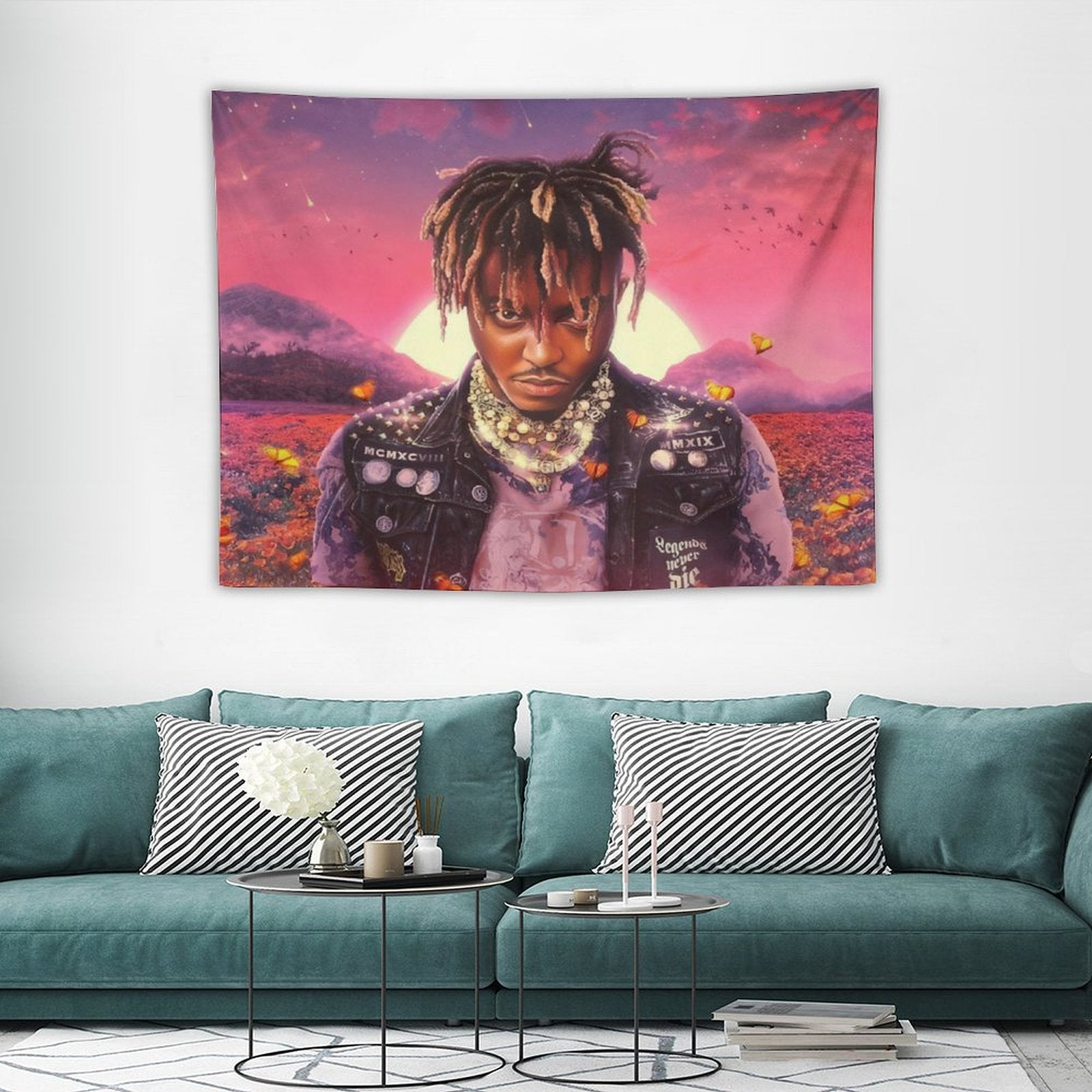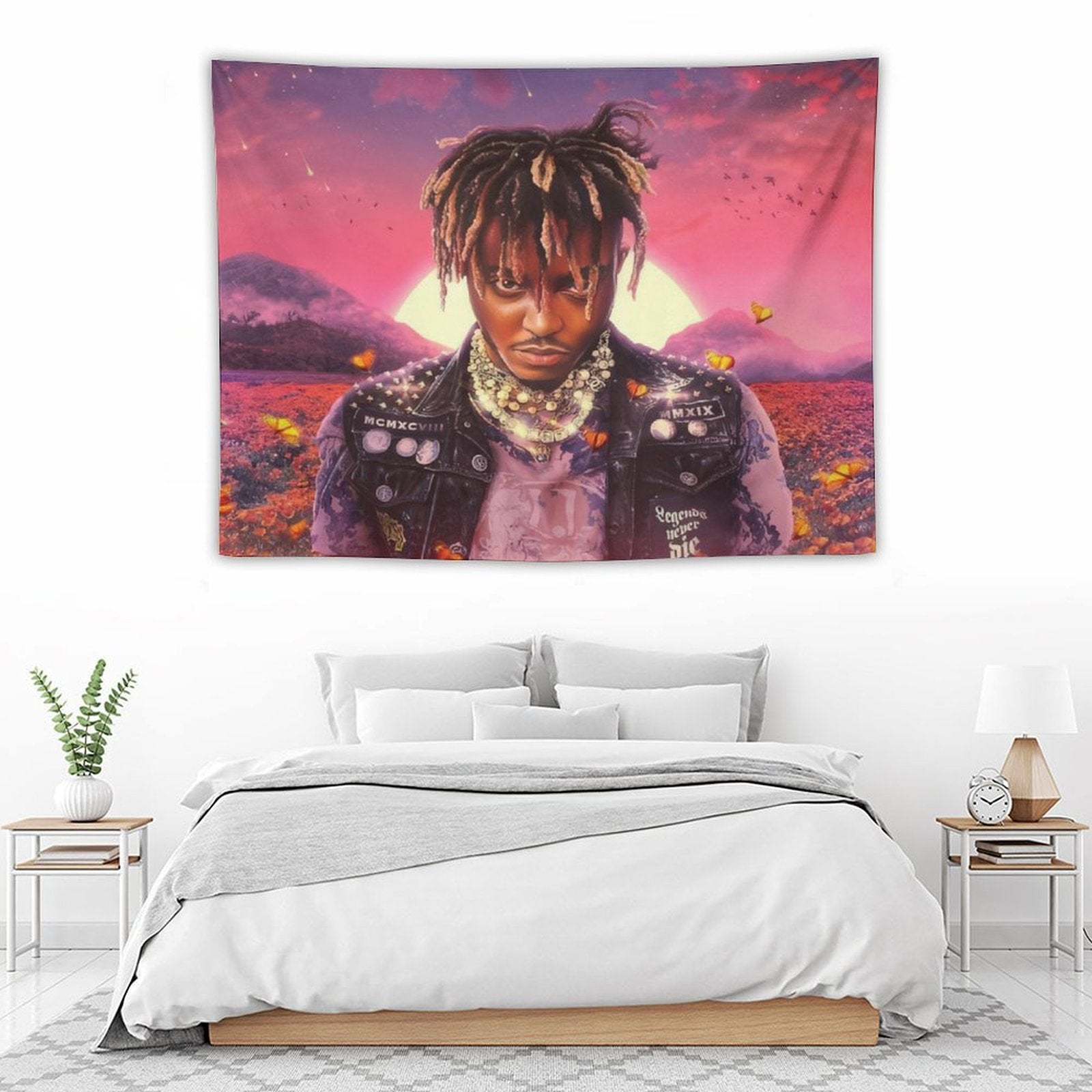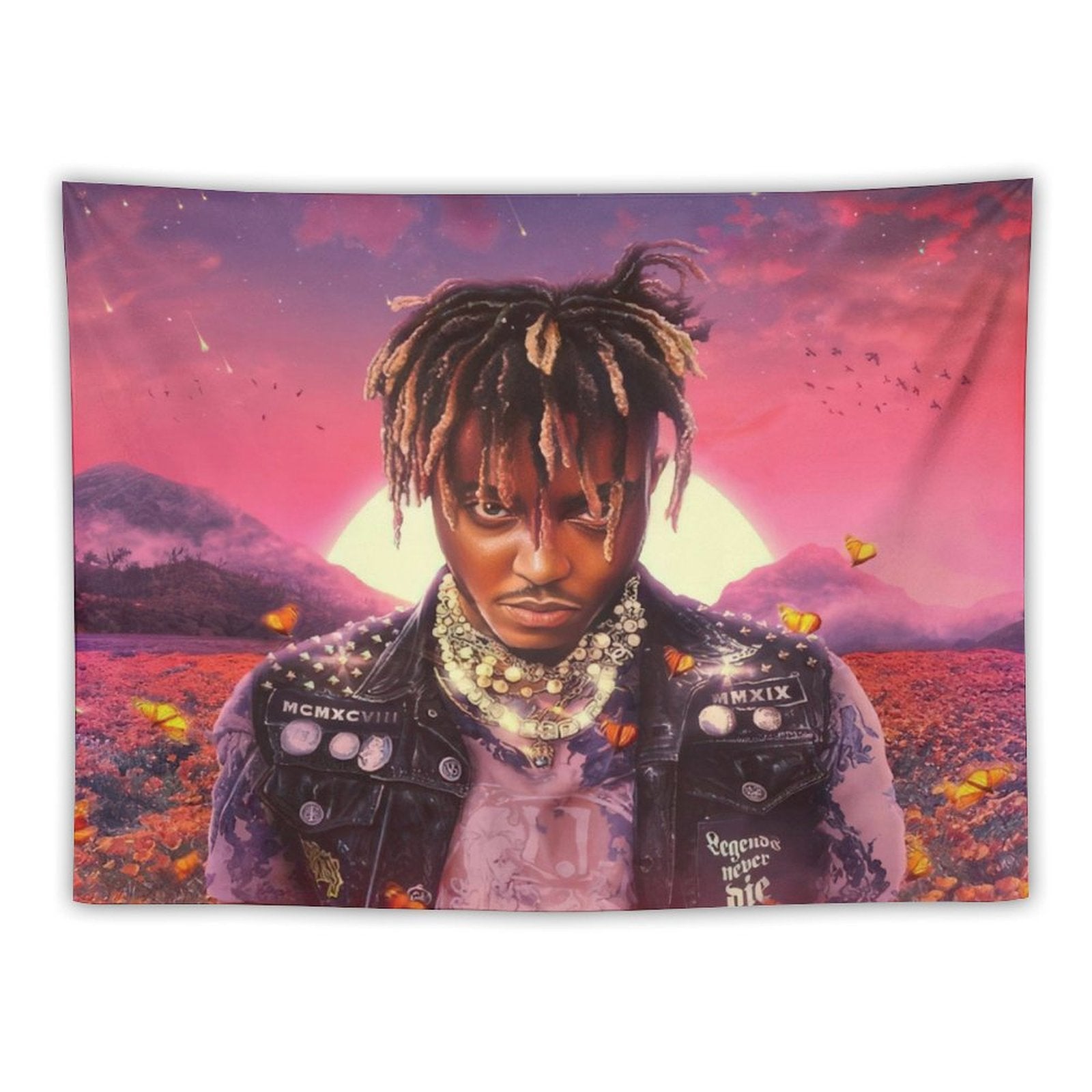 💓【MULTI-FUNCTION】 Used "Juice Legends Wrld Never Die Album Artist Lucid Dreams Tapestry" to decorate your bedroom, college dorm, room, living room, kitchen wall, can be used as tapestry or wall hanging, bedspread, tablecloth, dormitory decoration, beach shawl, tablecloth, etc.