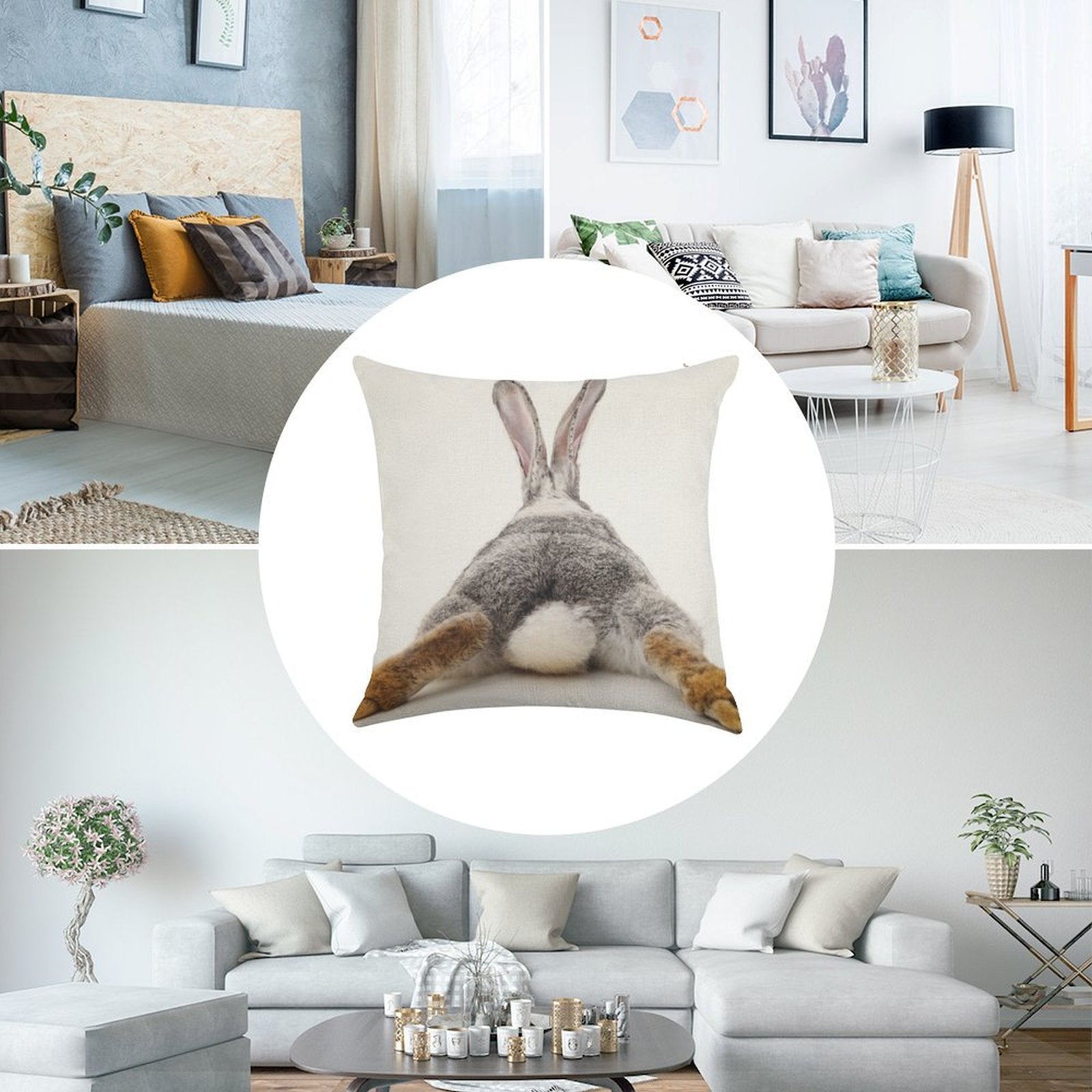 - Machine or hand washable (max 45°C). Avoid bleach and prolonged soaking to preserve the vibrant texture of your Just Relax Rabbit - View from behind Luxury Pillow Cover.