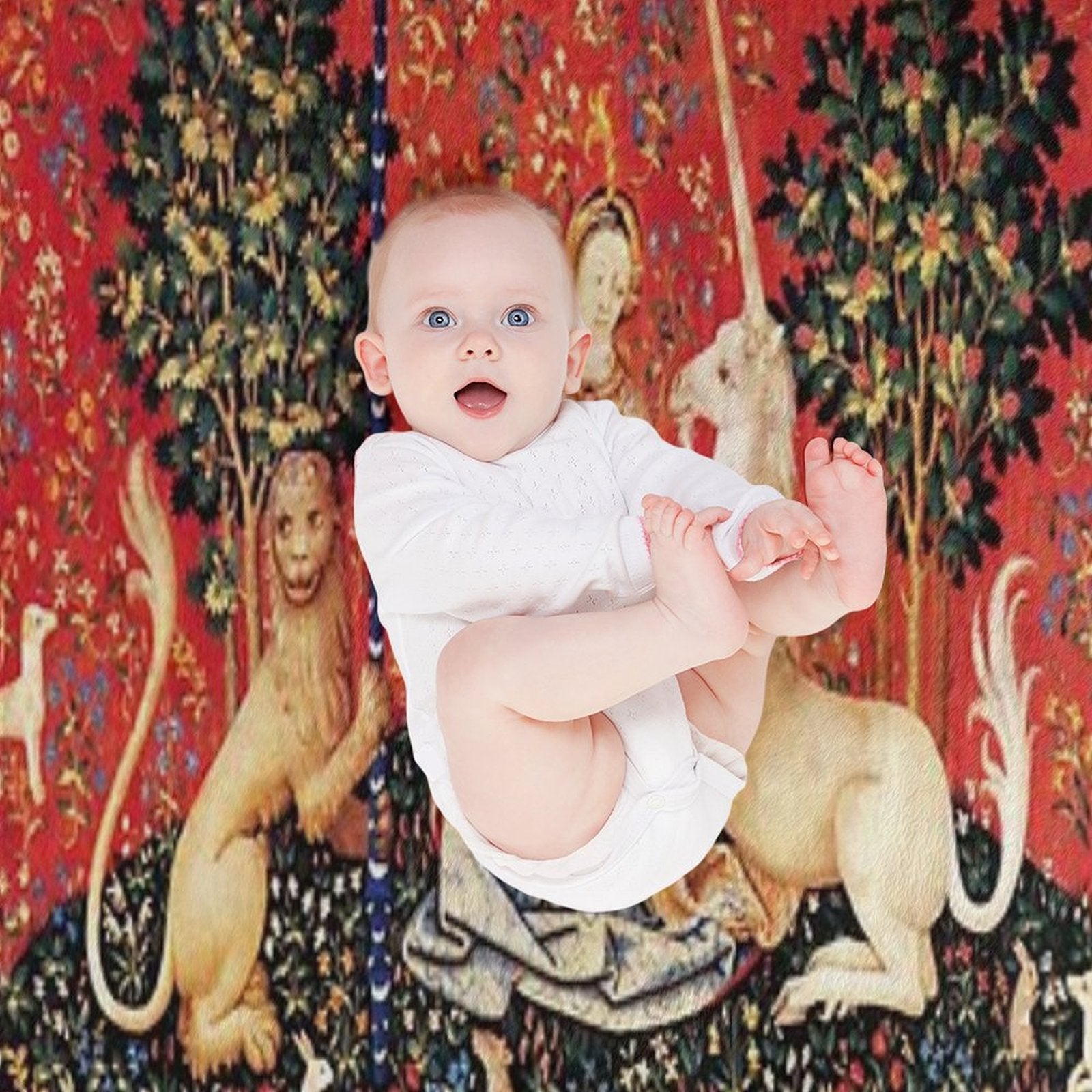- Transform it into a bath towel, picnic blanket, yoga mat companion, or chic LADY AND UNICORN ,SIGHT Red Green Fantasy Flowers,Animals-inspired wall hanging.