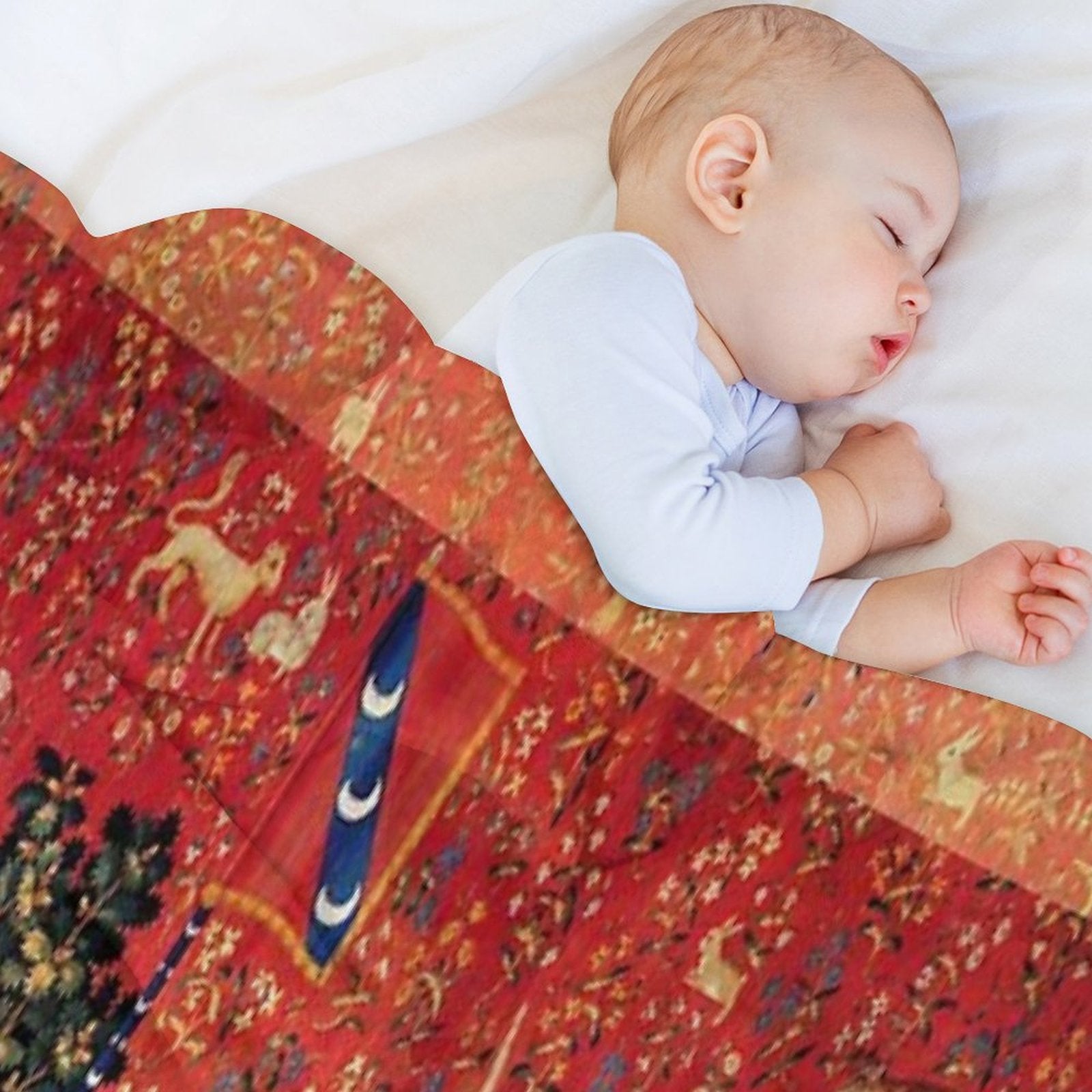 LADY AND UNICORN ,SIGHT Red Green Fantasy Flowers,Animals Blanket Size Chart: