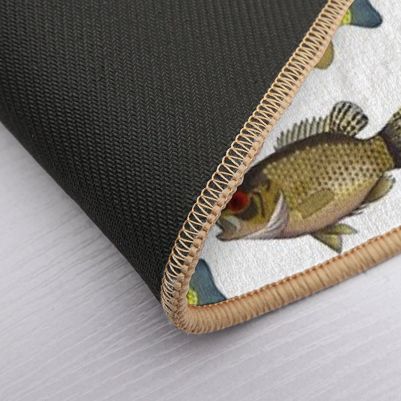 - Non-slip rubber backing grips floors securely, ideal for Lake Fish Trio Mat placements on tiles, wood, or marble.