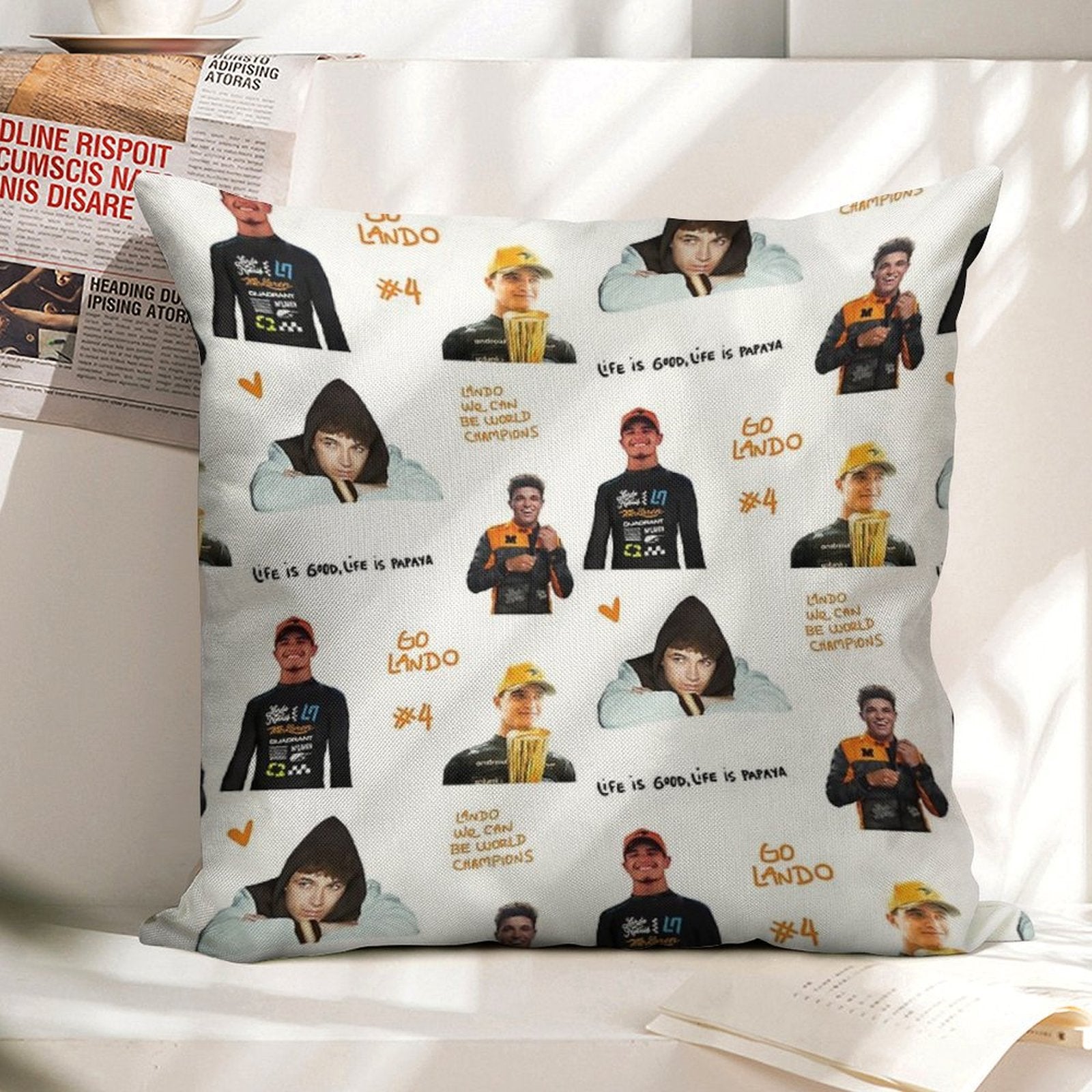 - Machine or hand washable (max 45°C). Avoid bleach and prolonged soaking to preserve the vibrant texture of your Lando Norris Illustrated Stickers Luxury Pillow Cover.