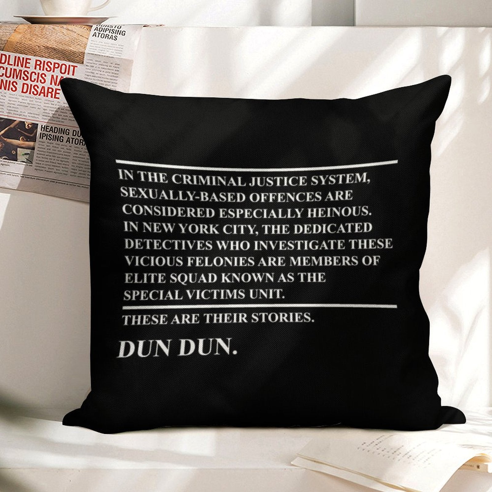 - Machine or hand washable (max 45°C). Avoid bleach and prolonged soaking to preserve the vibrant texture of your Law & Order Svu Luxury Pillow Cover.