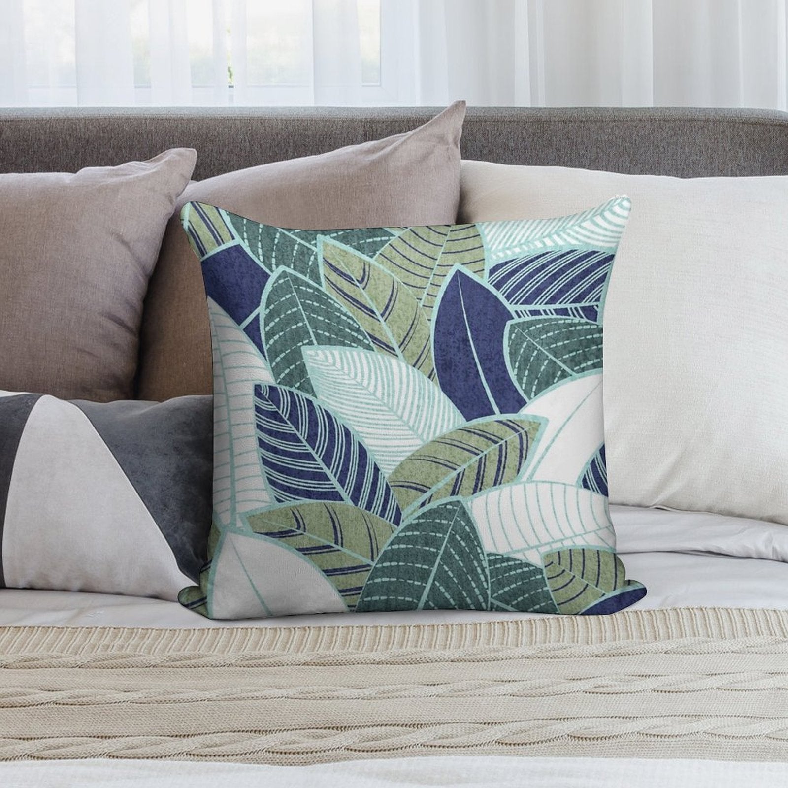 ✔️ Fits Any Style – Neutral tones and plush texture suit all Leaf Wall Navy Blue Pine And Sage Green Leaves Mint Lines decors.