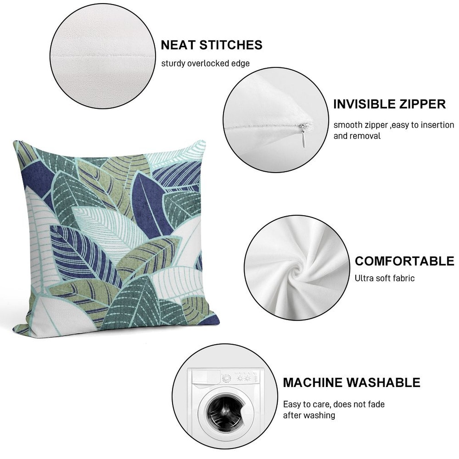 - Reinforced stitching along the edges prevents fraying and extends the life of your Leaf Wall Navy Blue Pine And Sage Green Leaves Mint Lines Pillowcase.