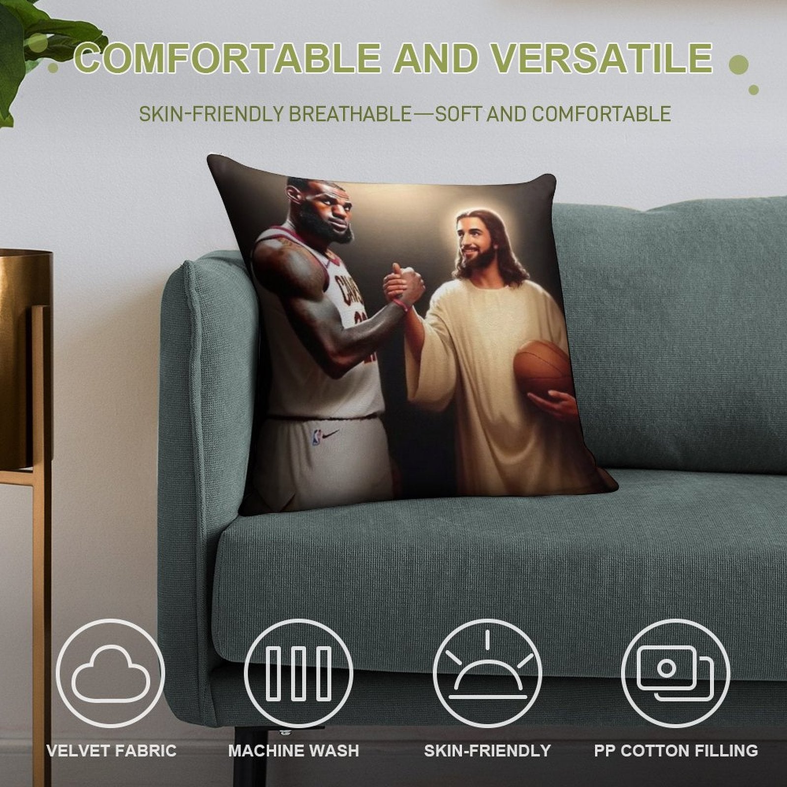 Lebron James + Jesus Soft Shrink-Resistant Throw Pillow