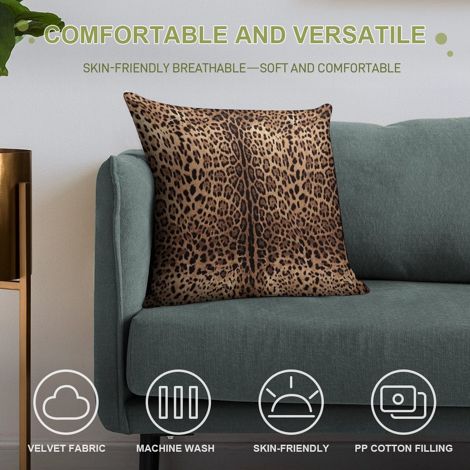 Leopard Print Skin Soft Short Plush Fabric Throw Pillow