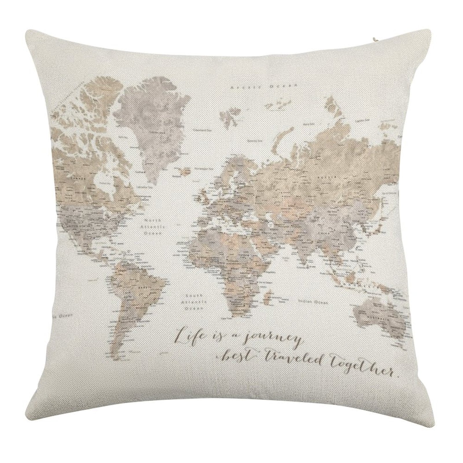 - Machine or hand washable (max 45°C). Avoid bleach and prolonged soaking to preserve the vibrant texture of your Life Is A Jouney Best Travelled Together, World Map, Abey Luxury Pillow Cover.