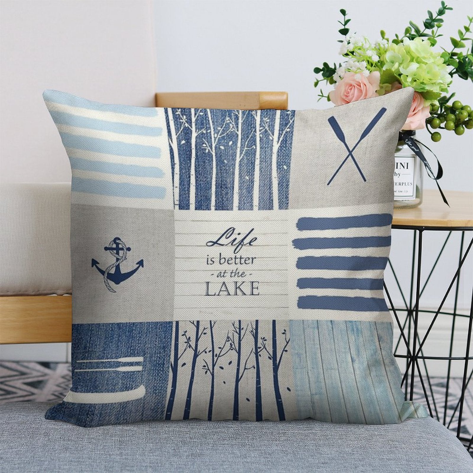 Life Is Better at The Lake Patchwork Linen Throw Pillow Cover