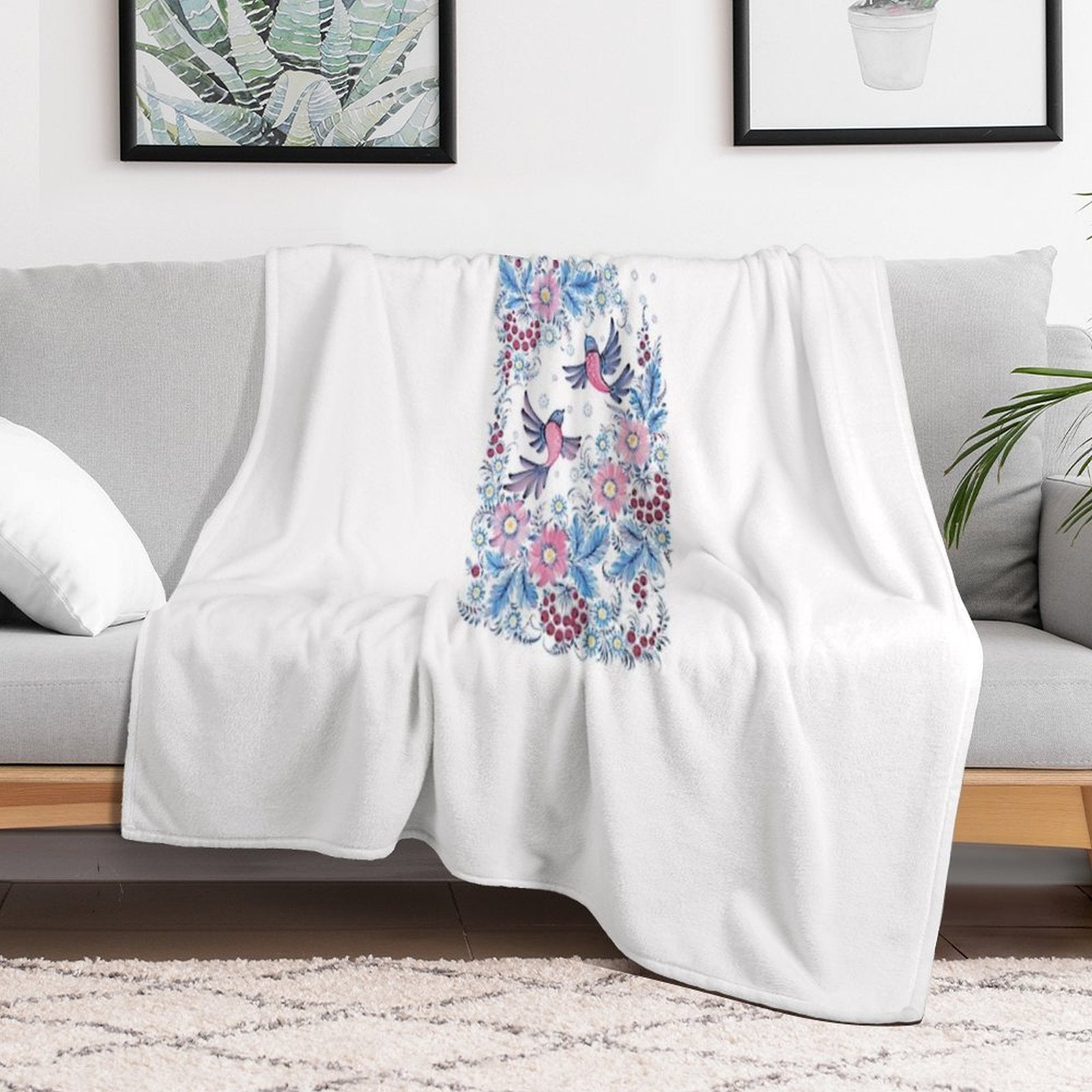 Lovebirds in Petrykivka Floral Garden Throw Blanket