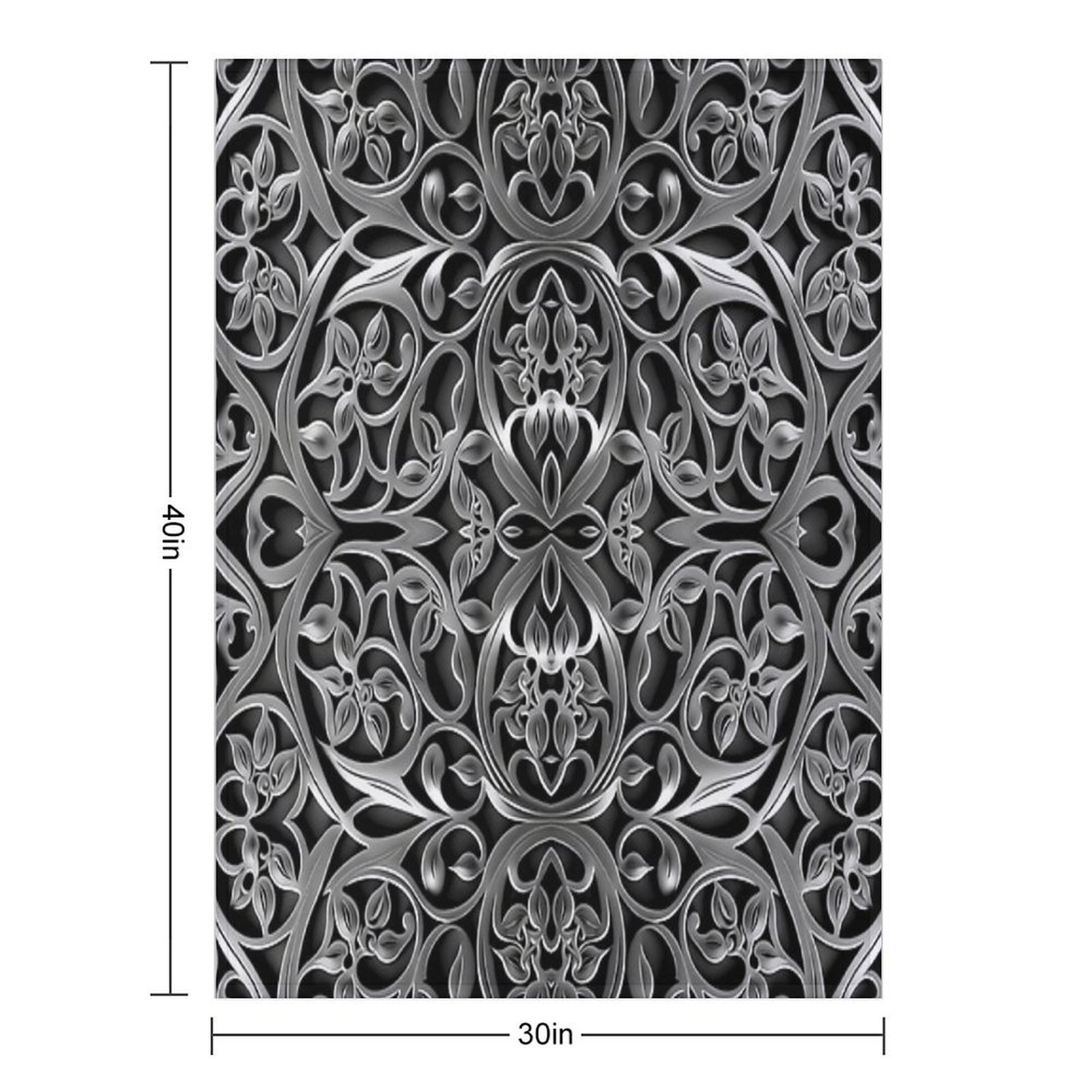 Luxurious Filigree Fern 3D Print - Silver And Black Designer Pattern for A Modern Classic Glam Home VI Blanket Size Chart: