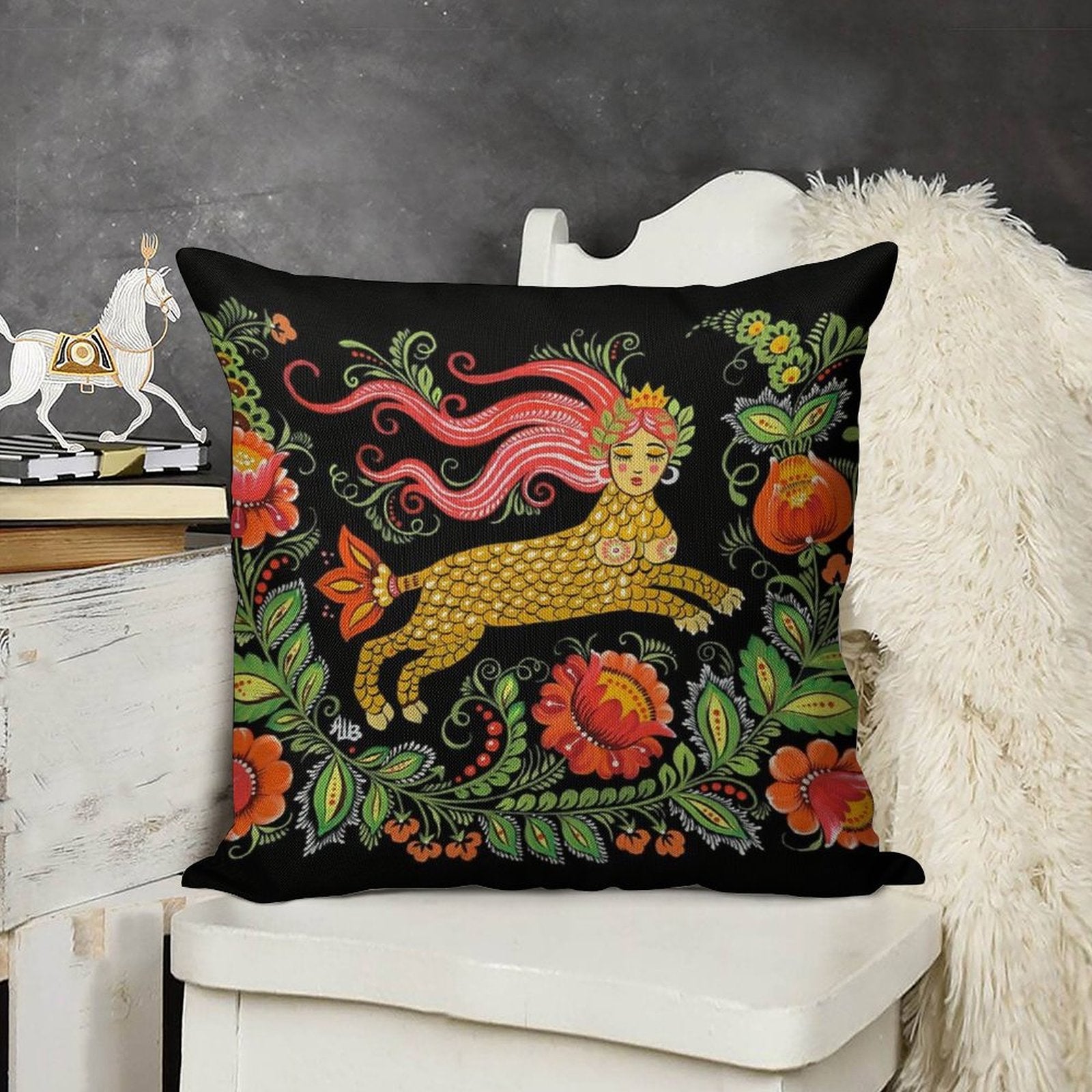 - Machine or hand washable (max 45°C). Avoid bleach and prolonged soaking to preserve the vibrant texture of your Magical Creature Folk Art (Lamia) Luxury Pillow Cover.