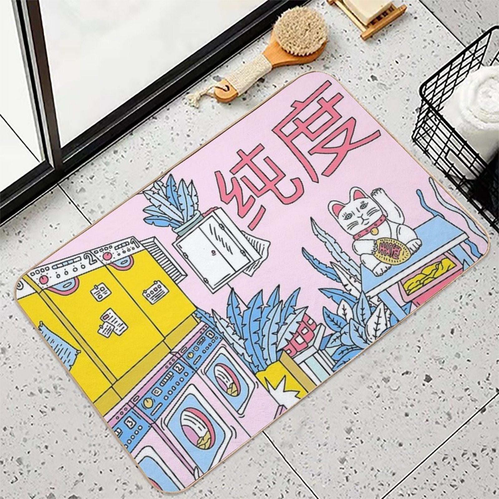- Non-slip rubber backing grips floors securely, ideal for MANEKI WASH BLUE Mat placements on tiles, wood, or marble.