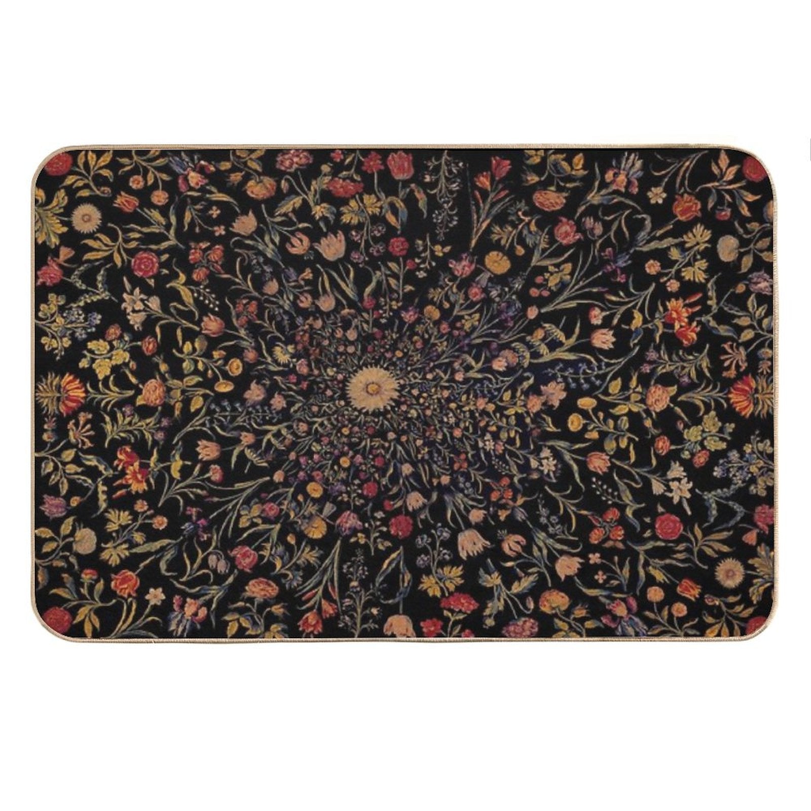 - Use as a vanity rug, guest suite accent, or mudroom defender – the Medieval Flowers on Black Mat adapts to any space.