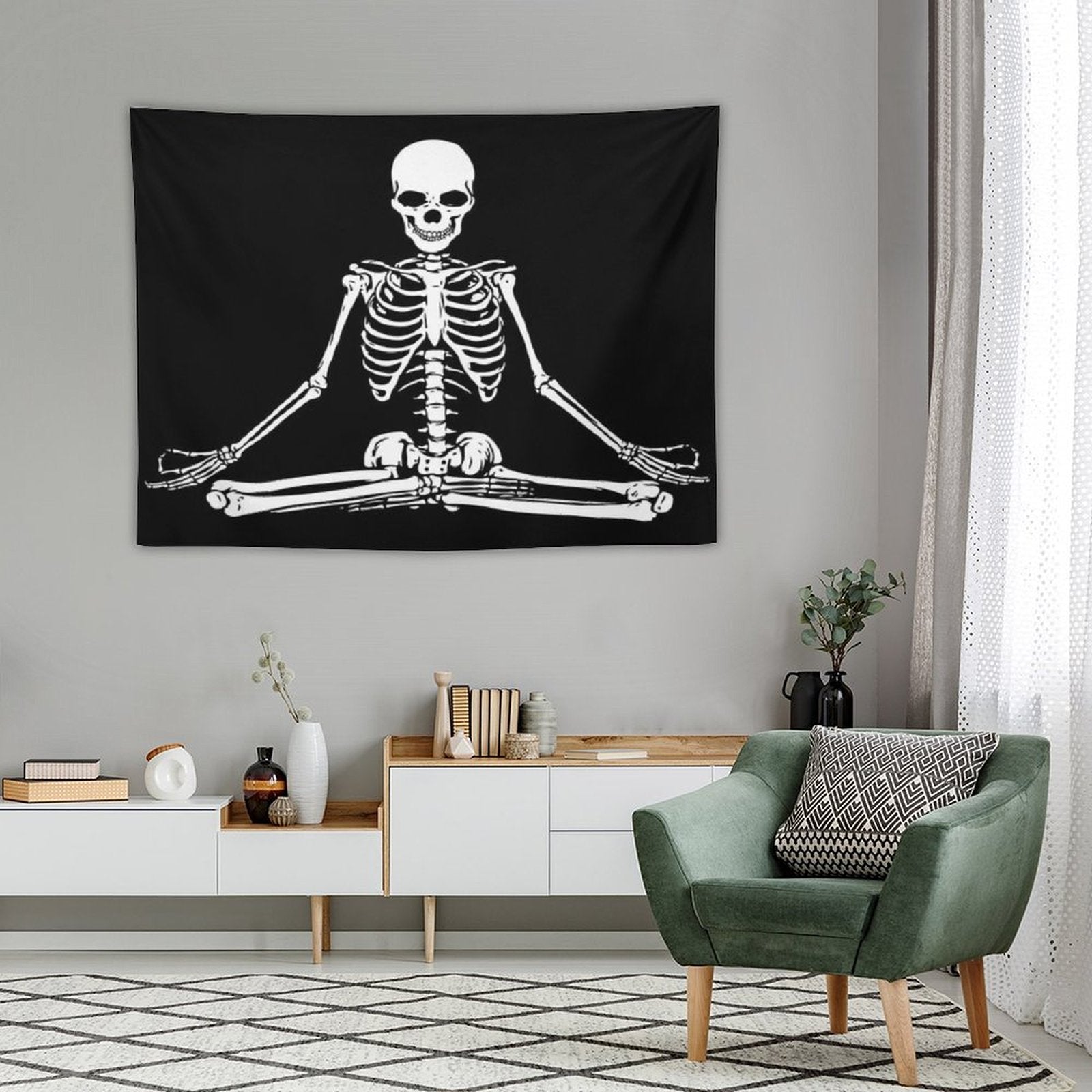 💓【MULTI-FUNCTION】 Used "Meditating Skeleton Tapestry" to decorate your bedroom, college dorm, room, living room, kitchen wall, can be used as tapestry or wall hanging, bedspread, tablecloth, dormitory decoration, beach shawl, tablecloth, etc.