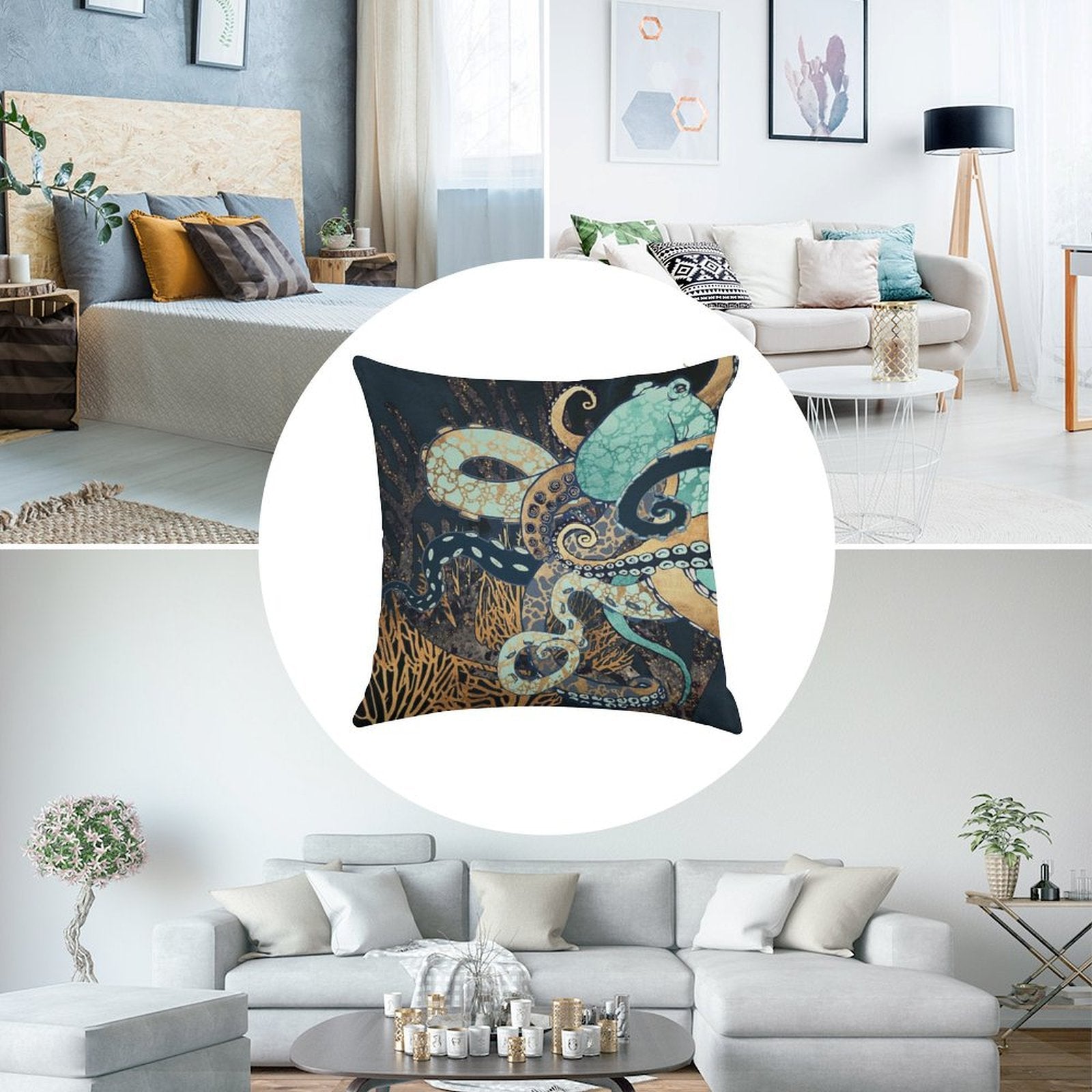 - Double-Stitched Edges: Precision stitching prevents fraying, stretching, and pilling, ensuring your Metallic Octopus II Linen Throw Pillow Cover stays pristine through countless uses.