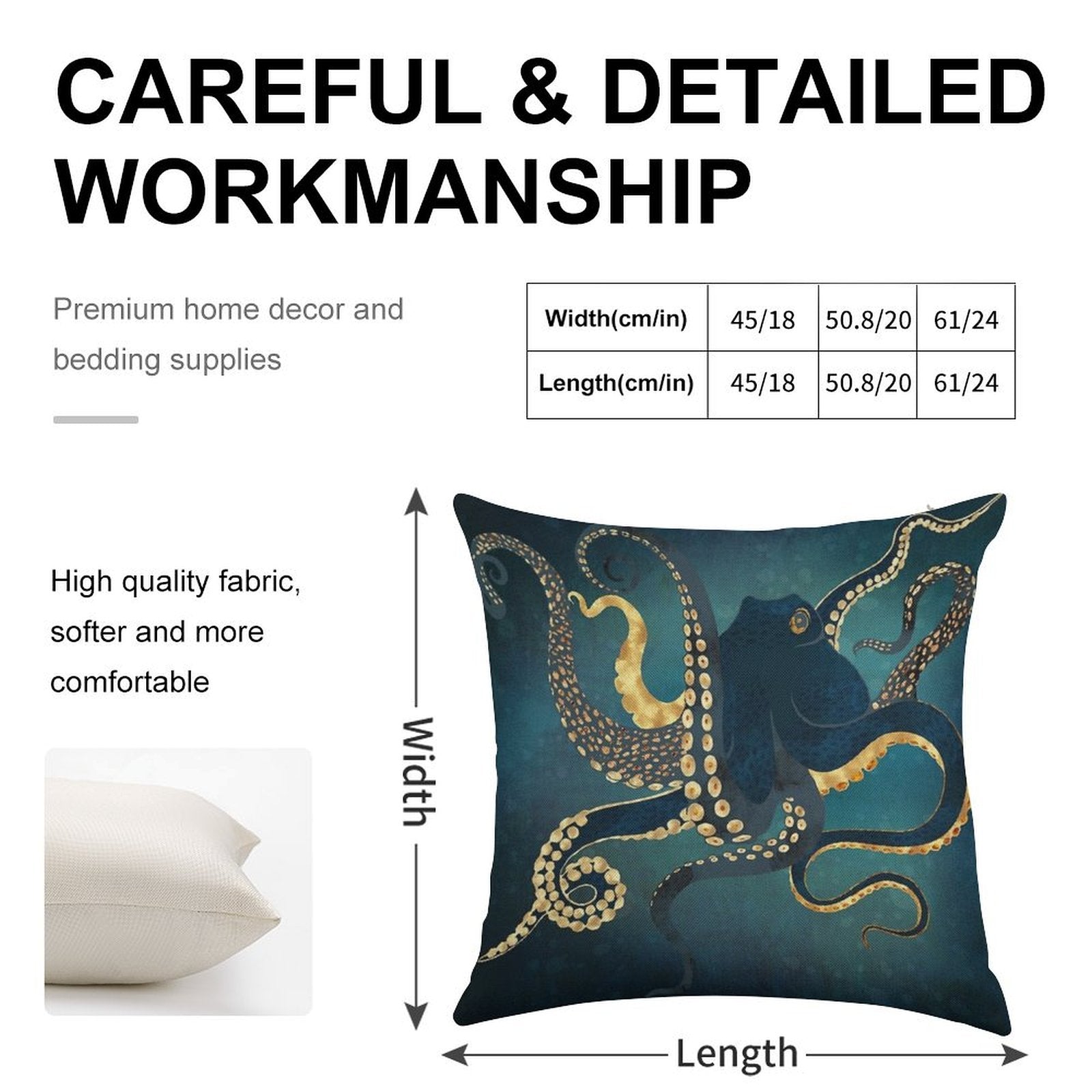 - Double-Stitched Edges: Precision stitching prevents fraying, stretching, and pilling, ensuring your Metallic Octopus IV Linen Throw Pillow Cover stays pristine through countless uses.