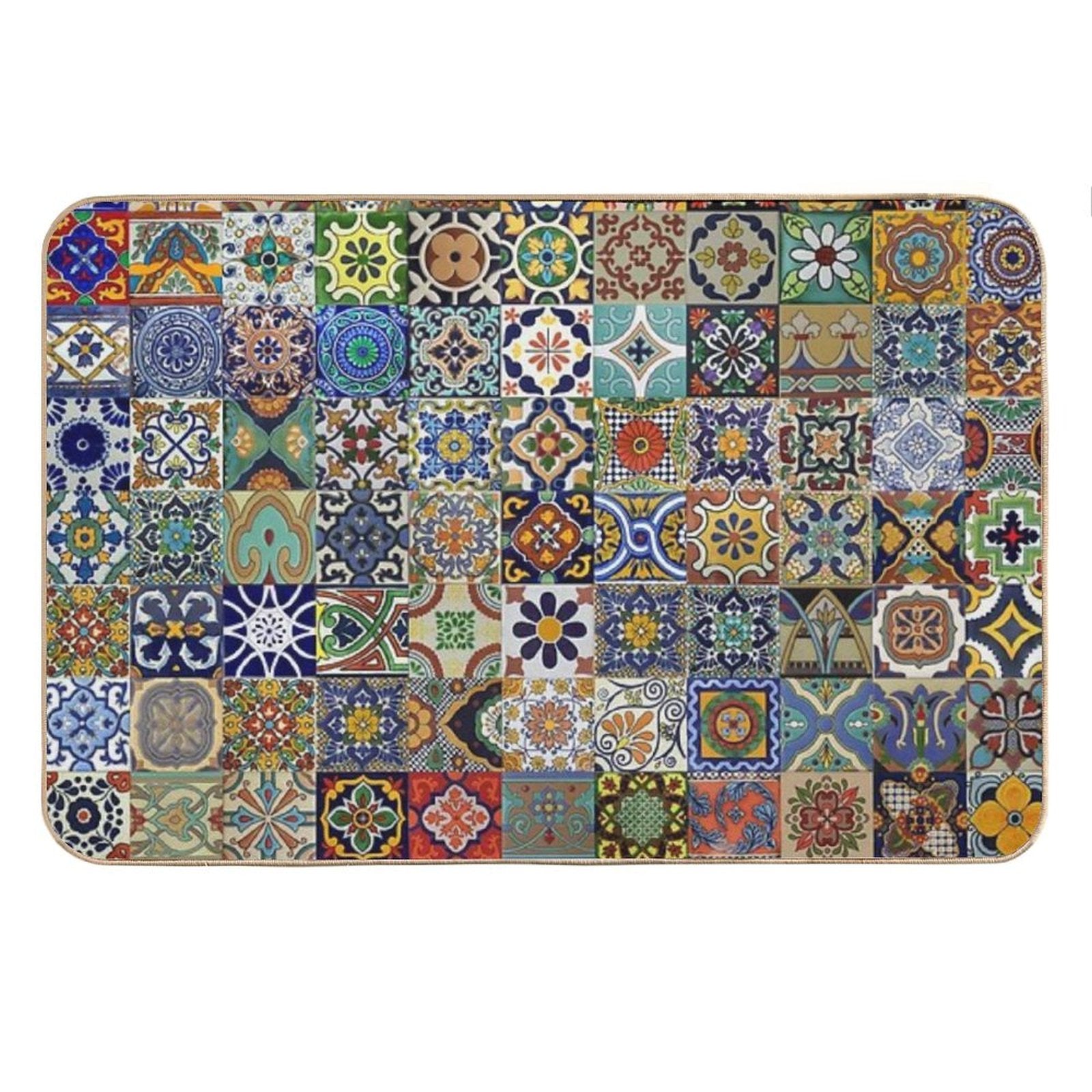 - Non-slip rubber backing grips floors securely, ideal for Mexican Tiles Mat placements on tiles, wood, or marble.