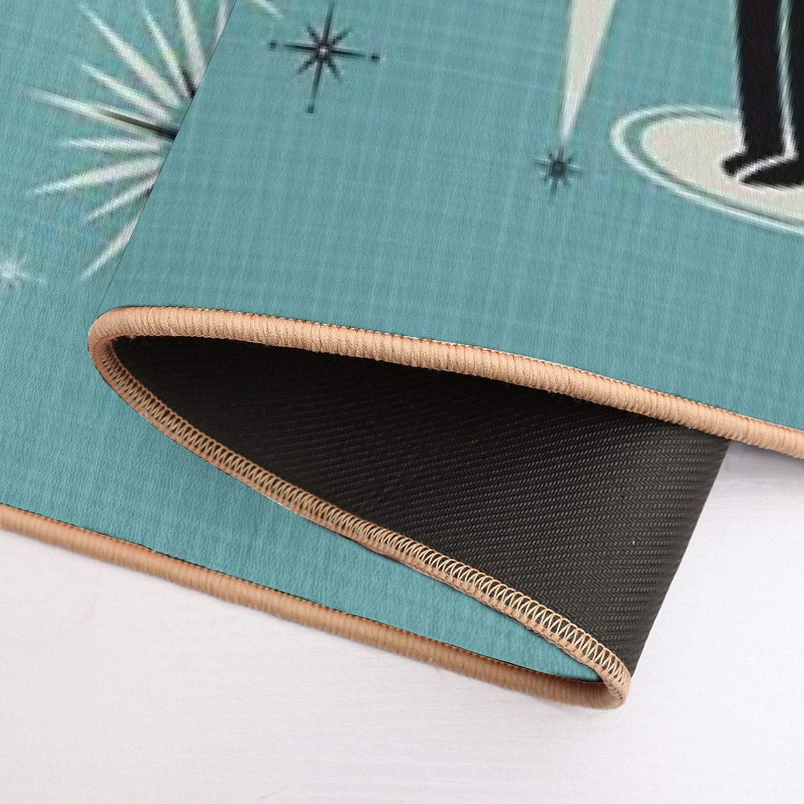 - Non-slip rubber backing grips floors securely, ideal for Mid Century Meow on Blue Mat placements on tiles, wood, or marble.