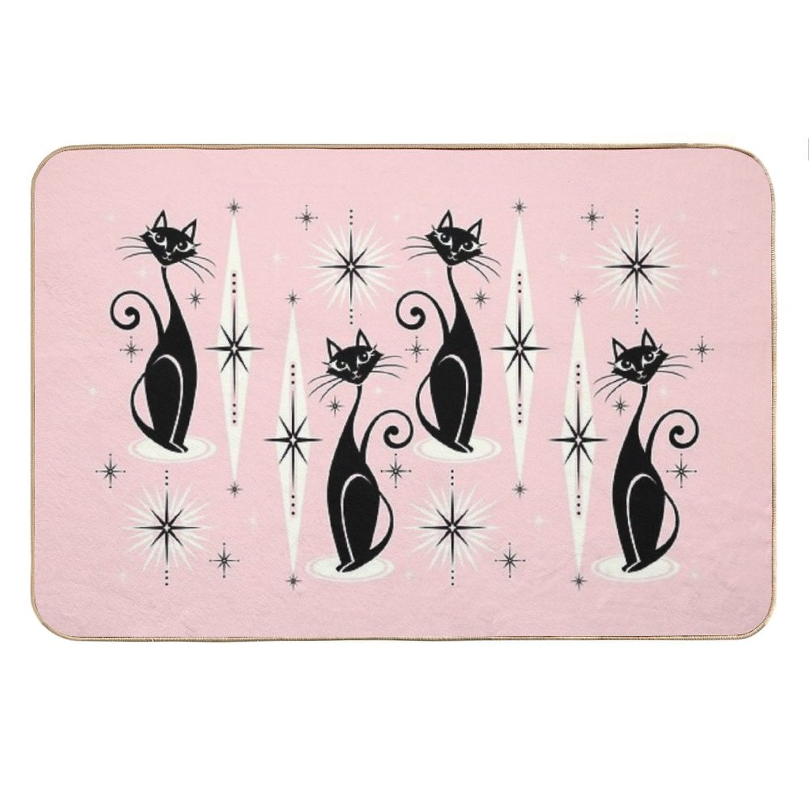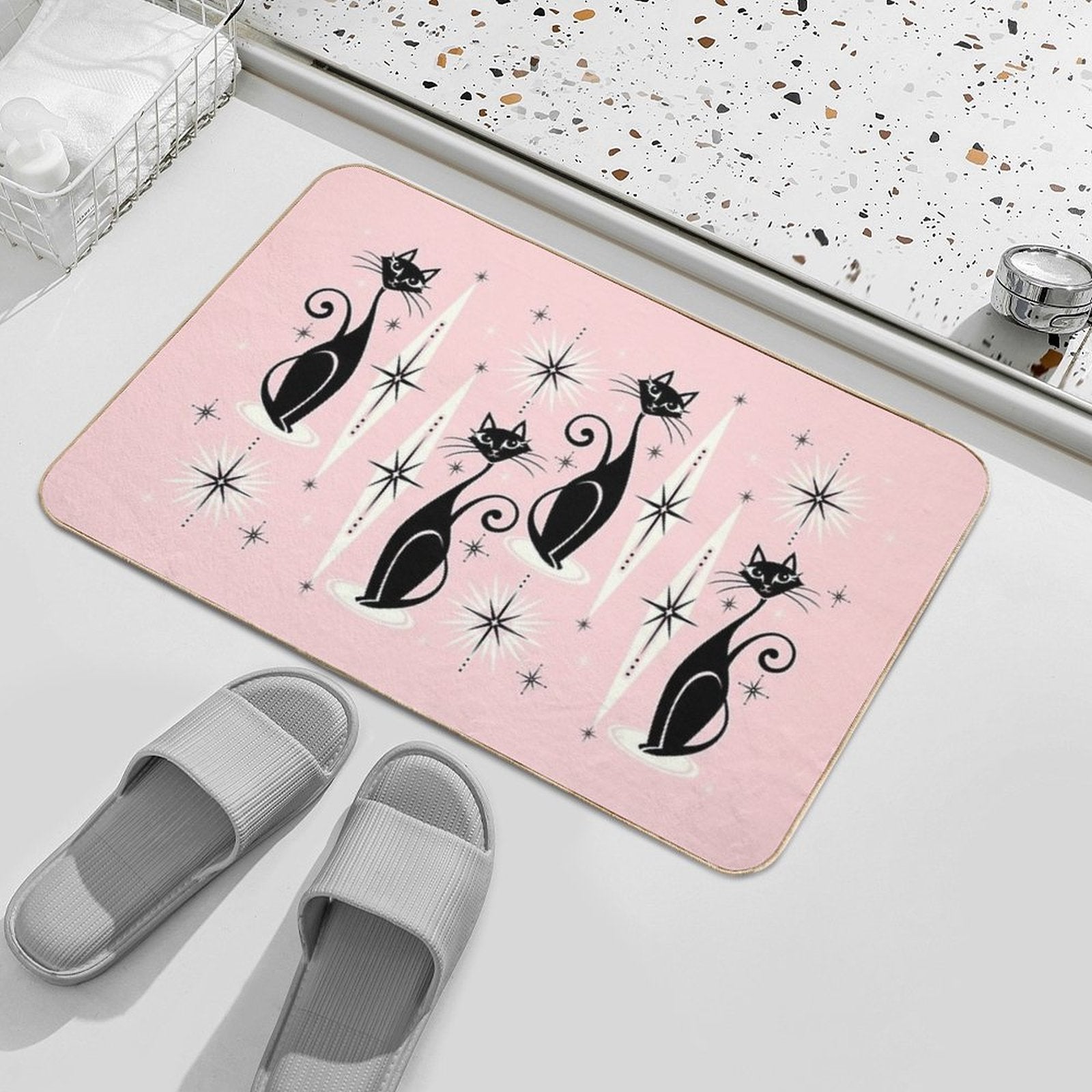 - Use as a vanity rug, guest suite accent, or mudroom defender – the Mid Century Meow Retro Atomic Cats LG ©studioxtine Mat adapts to any space.