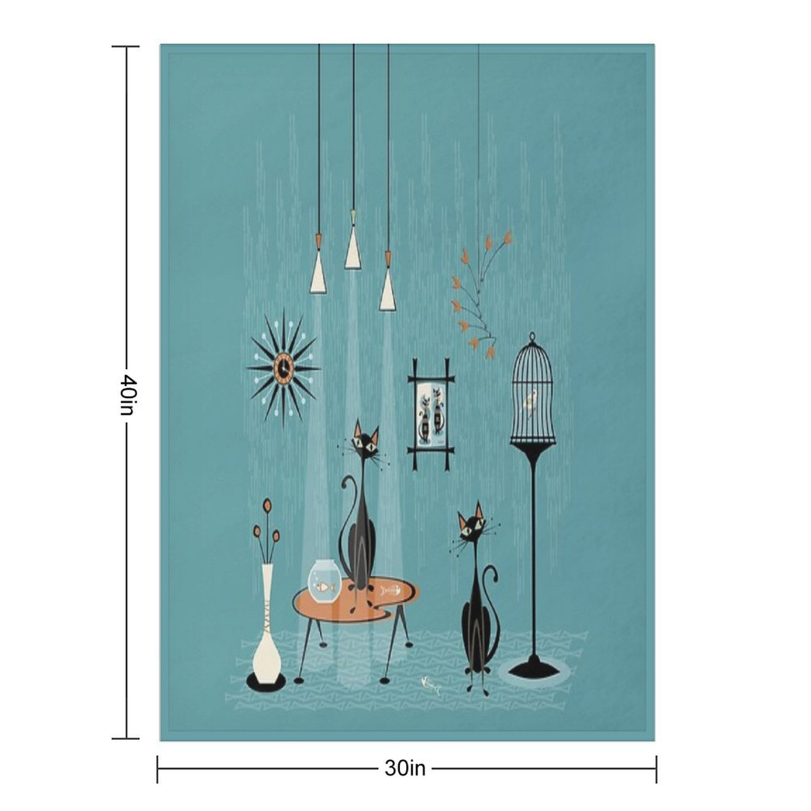 Mid Century Mischief Cat Red-Handed II Blanket Size Chart: