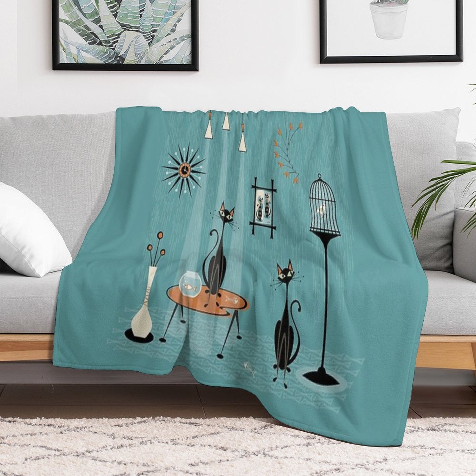 Mid Century Mischief Cat Red-Handed II Throw Blanket
