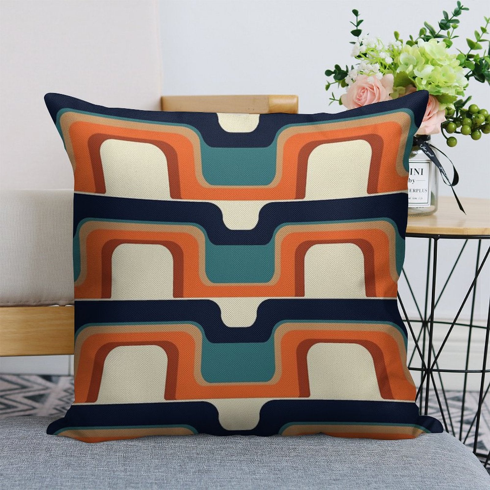 Mid-Century Modern Meets 1970s Orange & Blue Linen Throw Pillow Cover