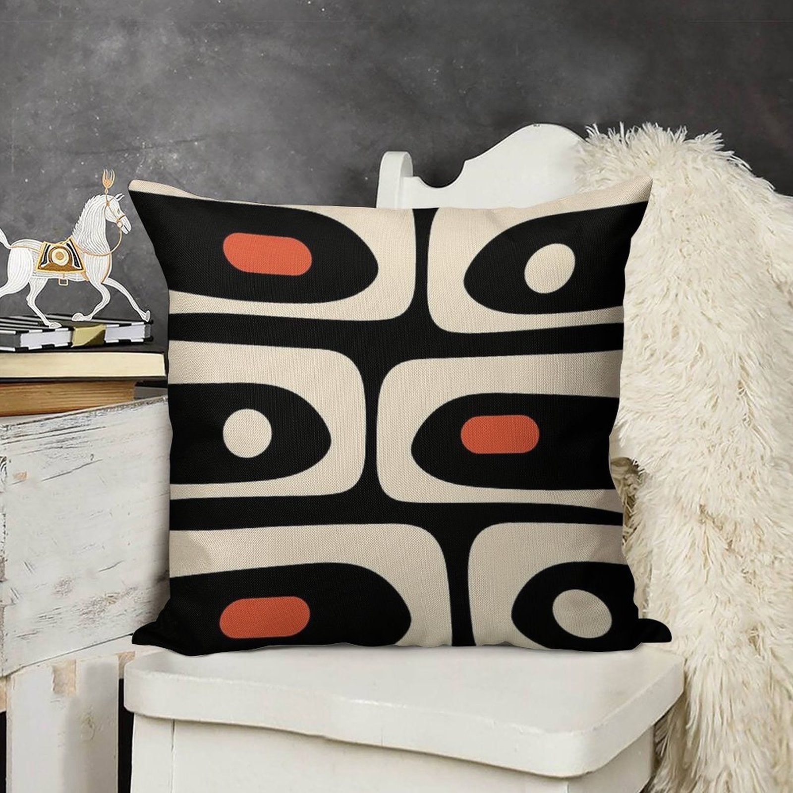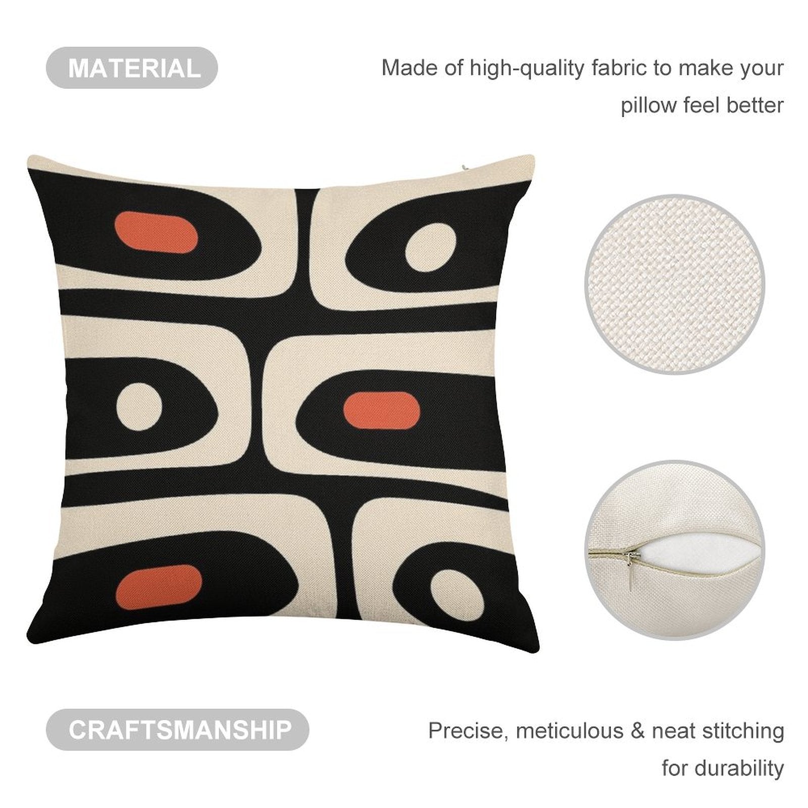 - Machine or hand washable (max 45°C). Avoid bleach and prolonged soaking to preserve the vibrant texture of your Mid Century Modern Piquet Abstract Pattern Black, Orange, And Almond Cream Luxury Pillow Cover.